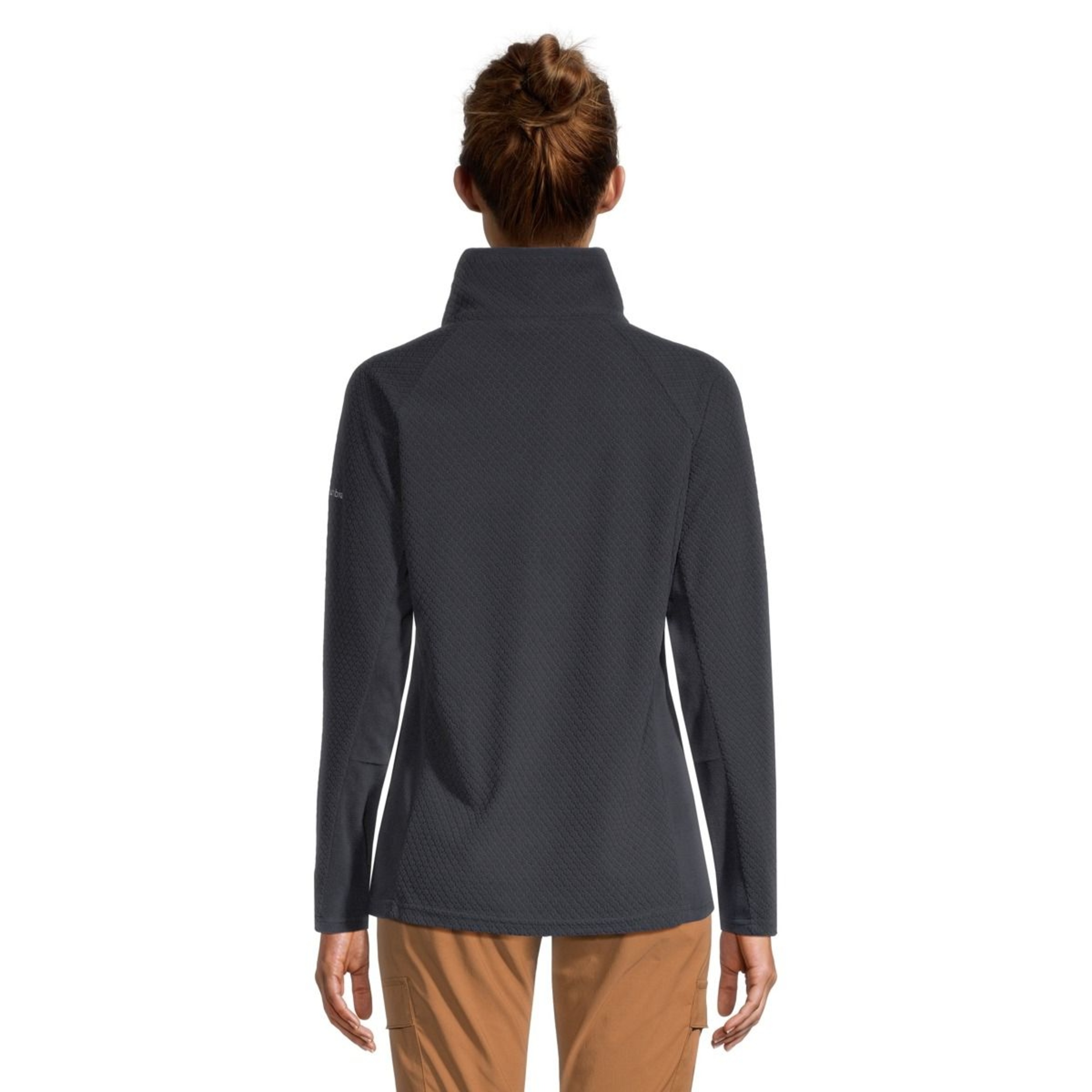 In cooler weather, stay cozy and look stylish wearing the Columbia Women's Glacial™ IV Print Half Zip Fleece Pullover. This long-sleeve layer features a unique pattern. Comfort stretch material and a half-zip closure deliver a fit and feel that's just right, while microfleece provides lasting comfort to this Columbia Glacial™ IV fleece pullover.