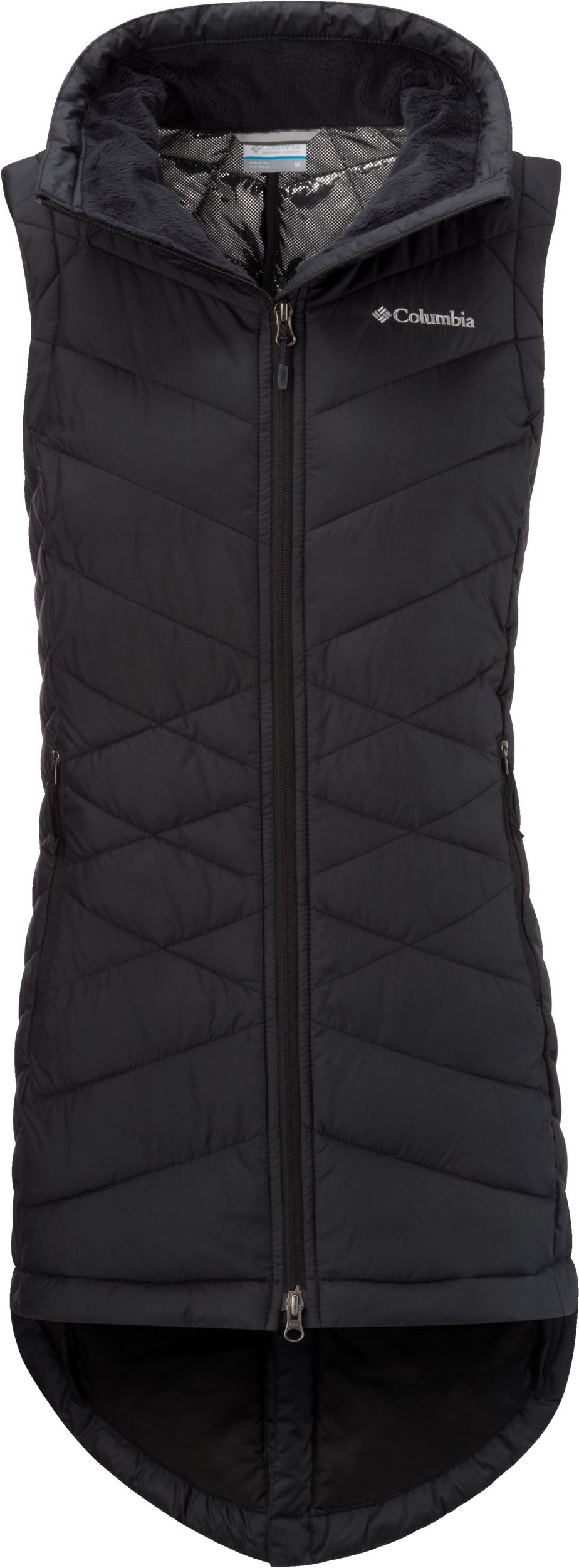 The Columbia Women's Heavenly Insulated Vest offers a sleek, insulated and semi-fitted silhouette designed for cold winter days. Crafted with a water-resistant exterior and thermal reflective interior lining, this vest locks in precious body heat while shielding you from the elements.