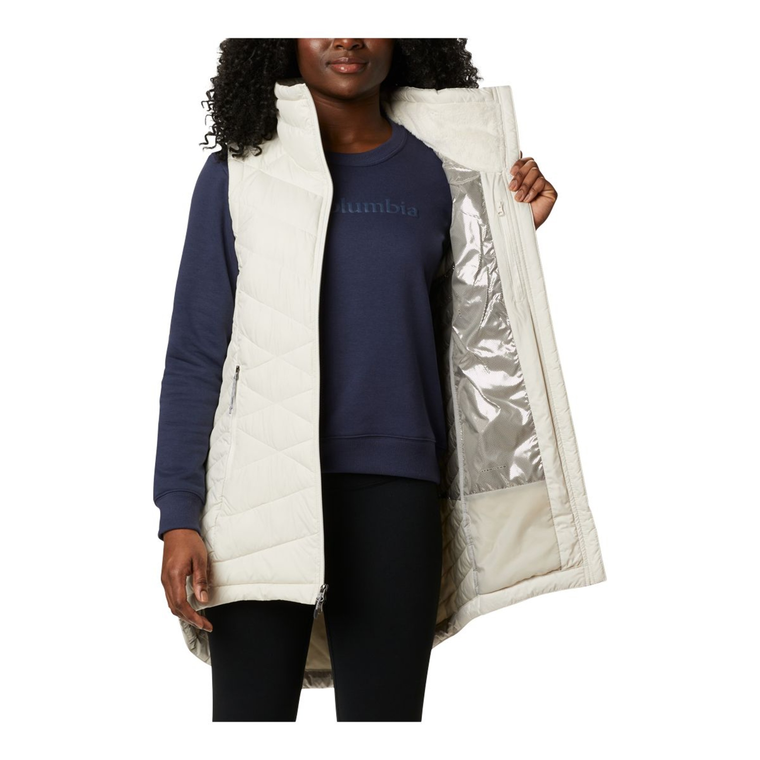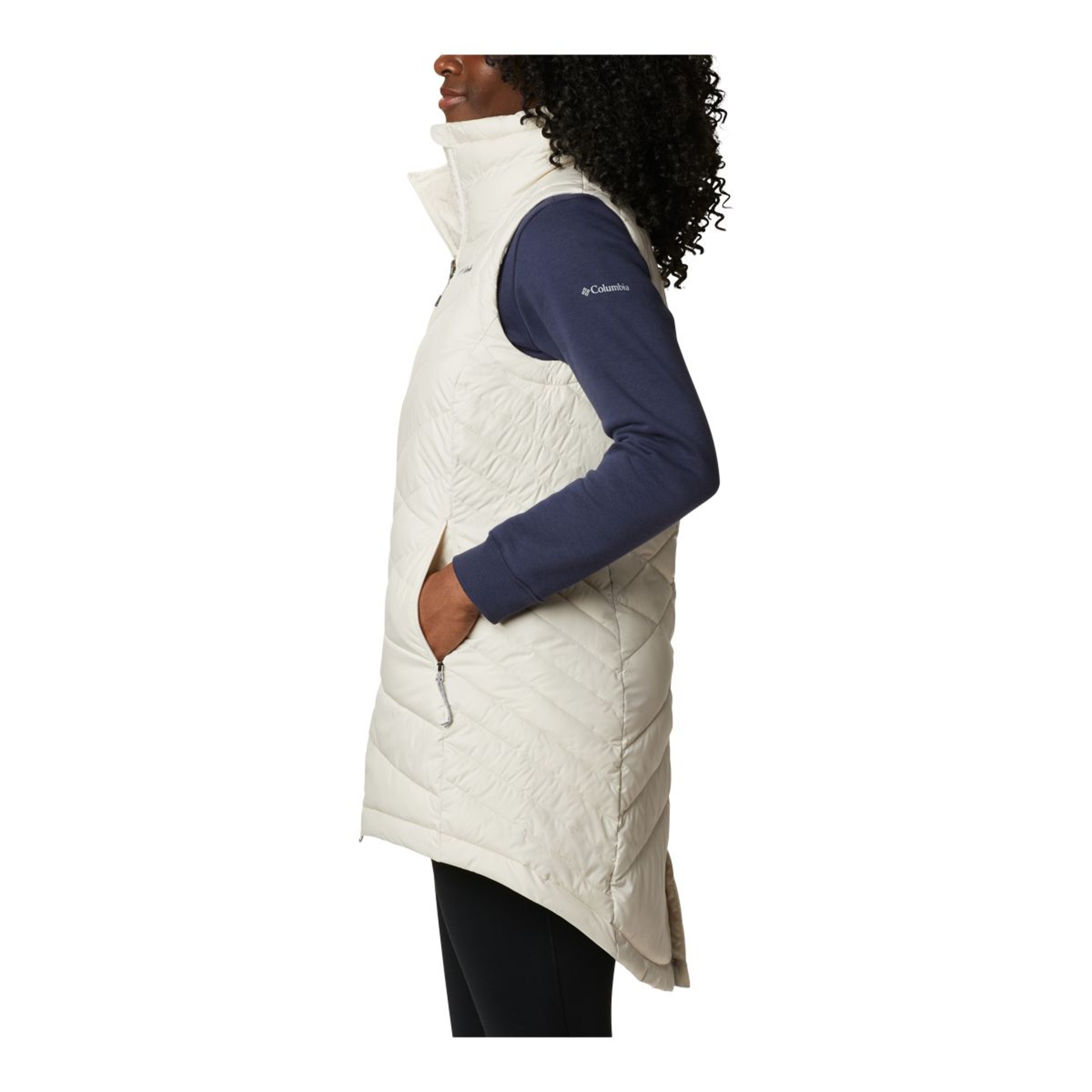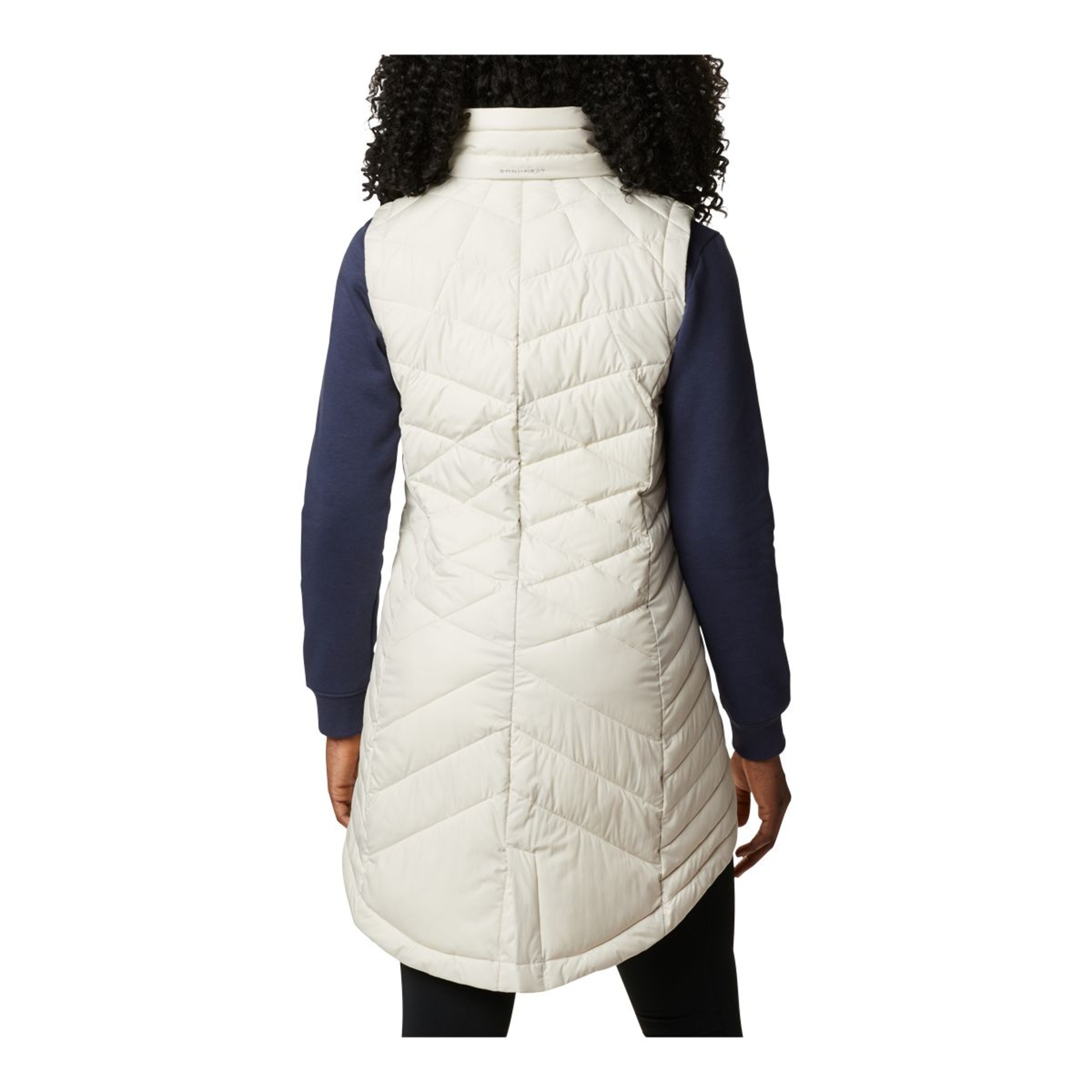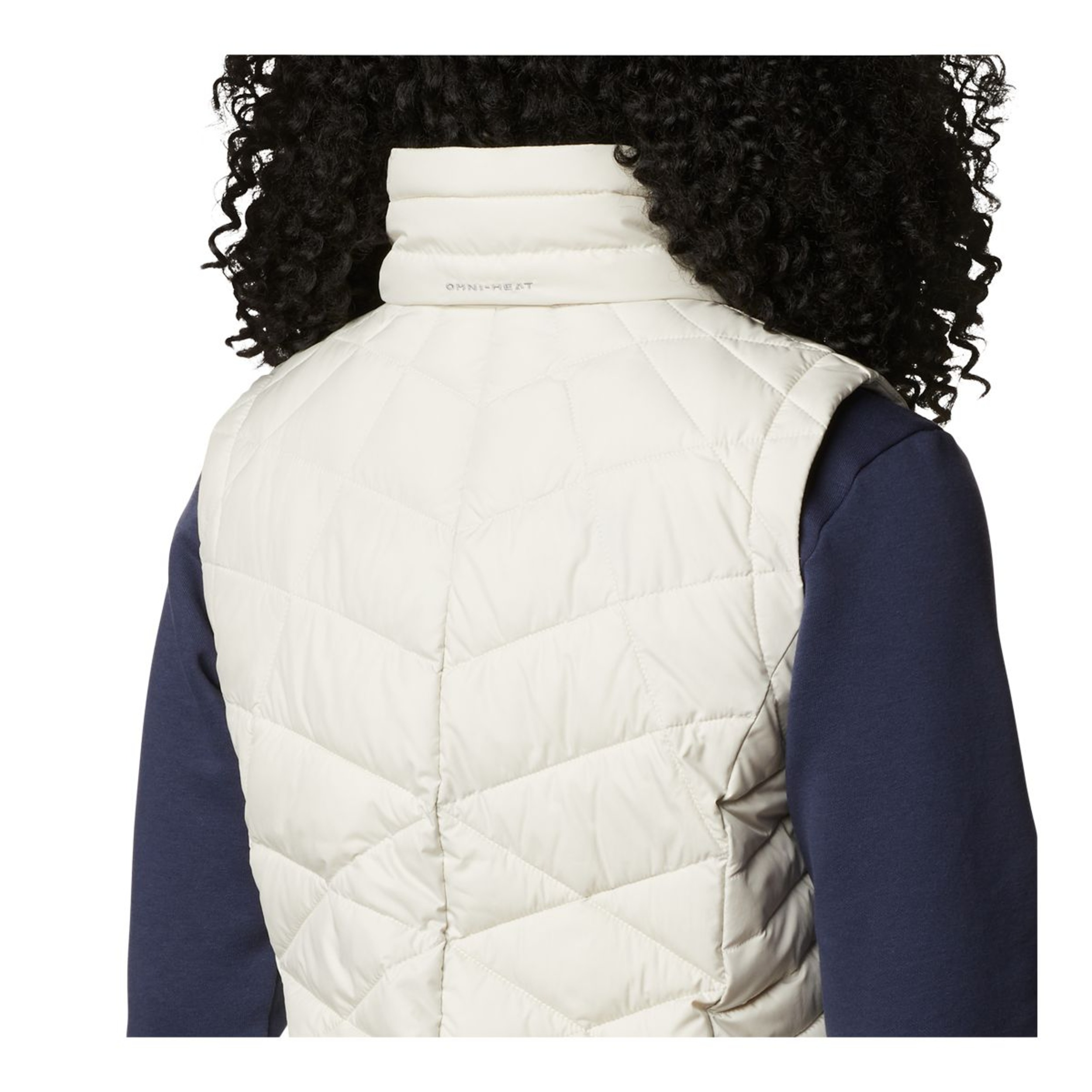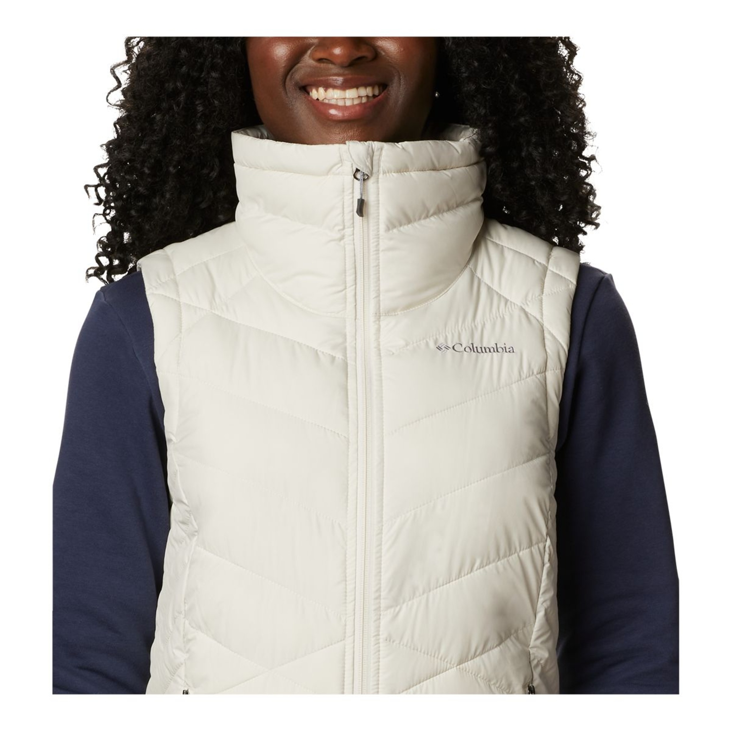 The Columbia Women's Heavenly Insulated Vest offers a sleek, insulated and semi-fitted silhouette designed for cold winter days. Crafted with a water-resistant exterior and thermal reflective interior lining, this vest locks in precious body heat while shielding you from the elements.