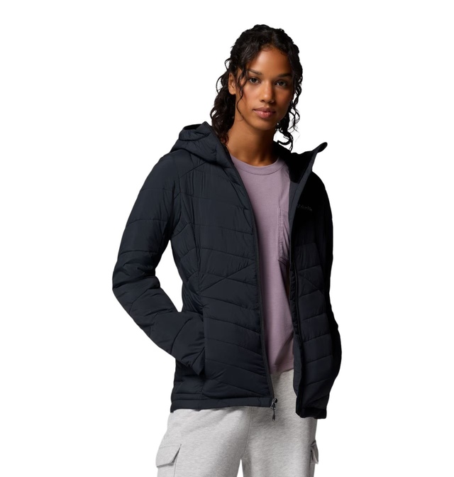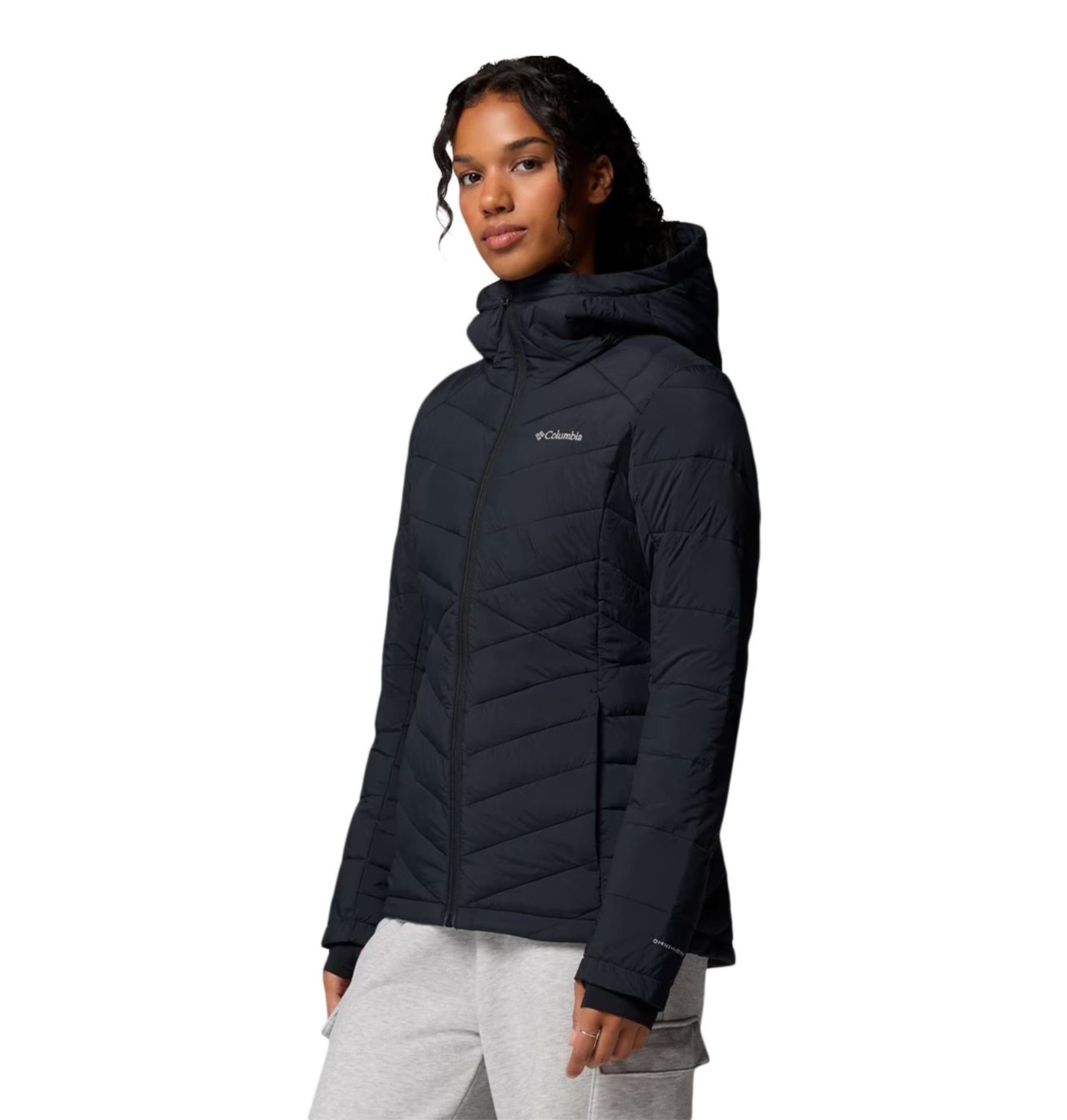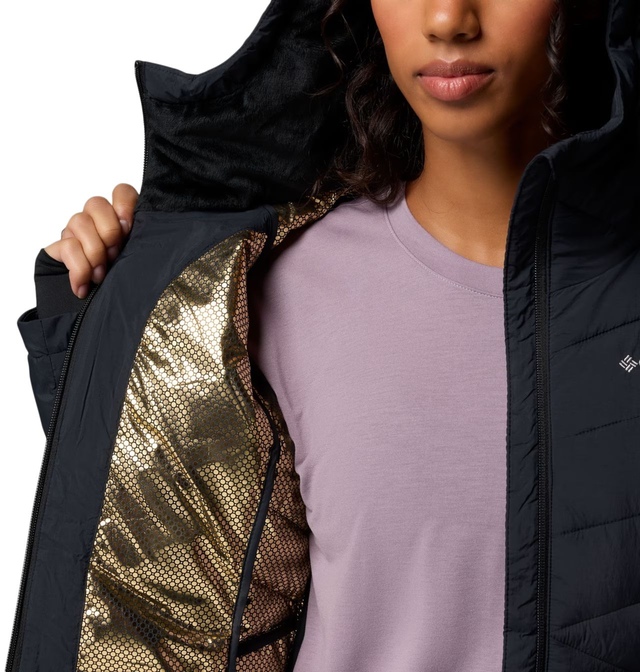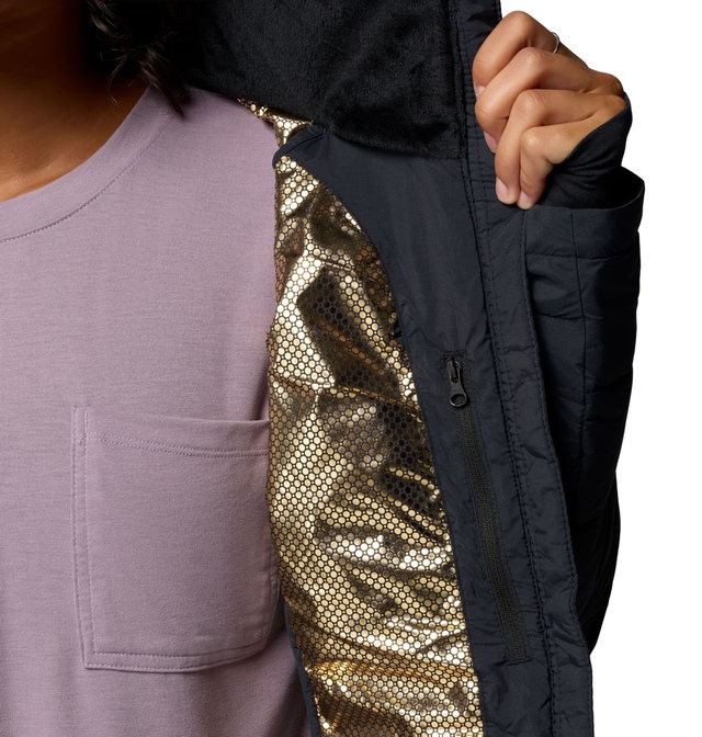 Just right for town or trail, this Columbia women’s jacket offers a cozy fleece-lined hood and collar, 100% recycled synthetic insulation and a thermal-reflective gold lining that helps retain heat. The water-resistant shell has a subtle sheen that gives it a luxe look.