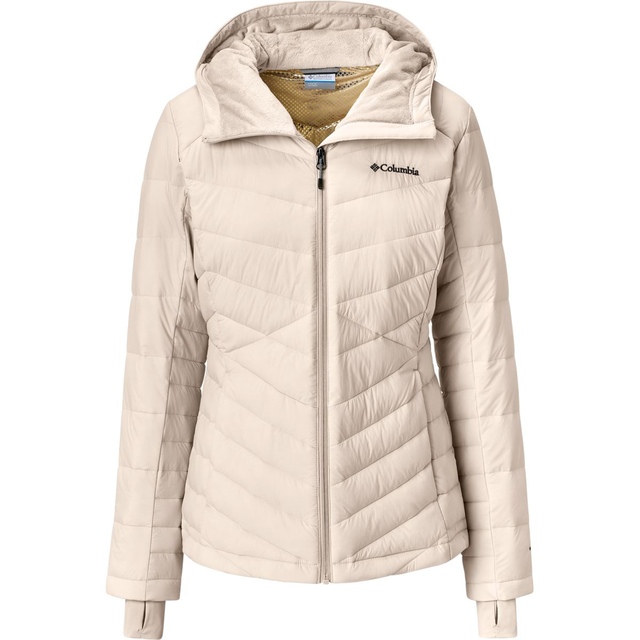 Just right for town or trail, this Columbia women’s jacket offers a cozy fleece-lined hood and collar, 100% recycled synthetic insulation and a thermal-reflective gold lining that helps retain heat. The water-resistant shell has a subtle sheen that gives it a luxe look.