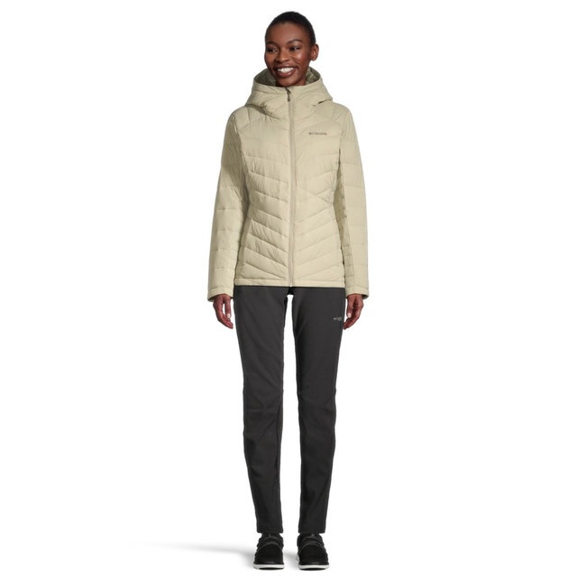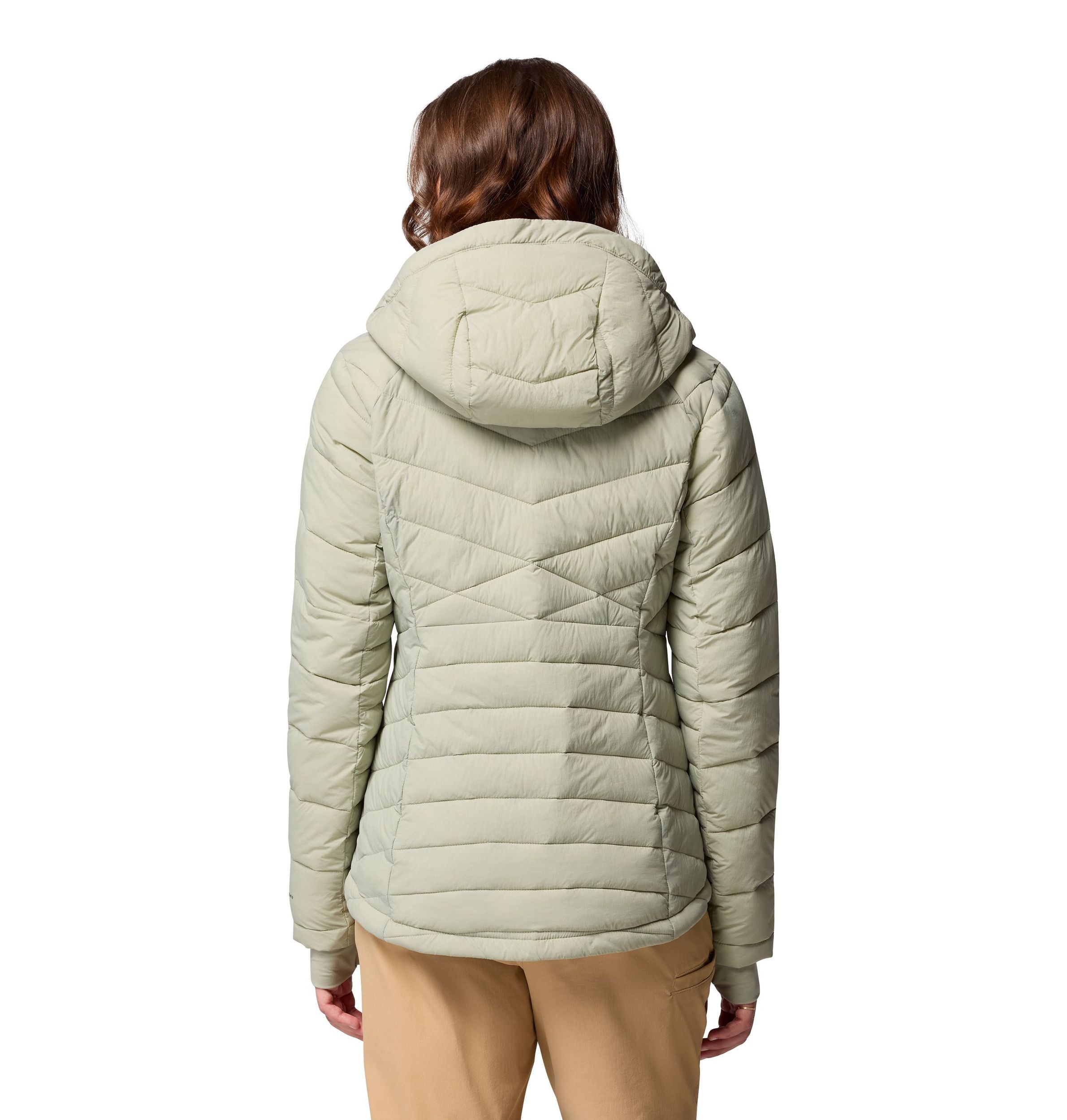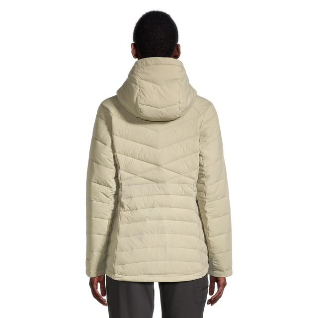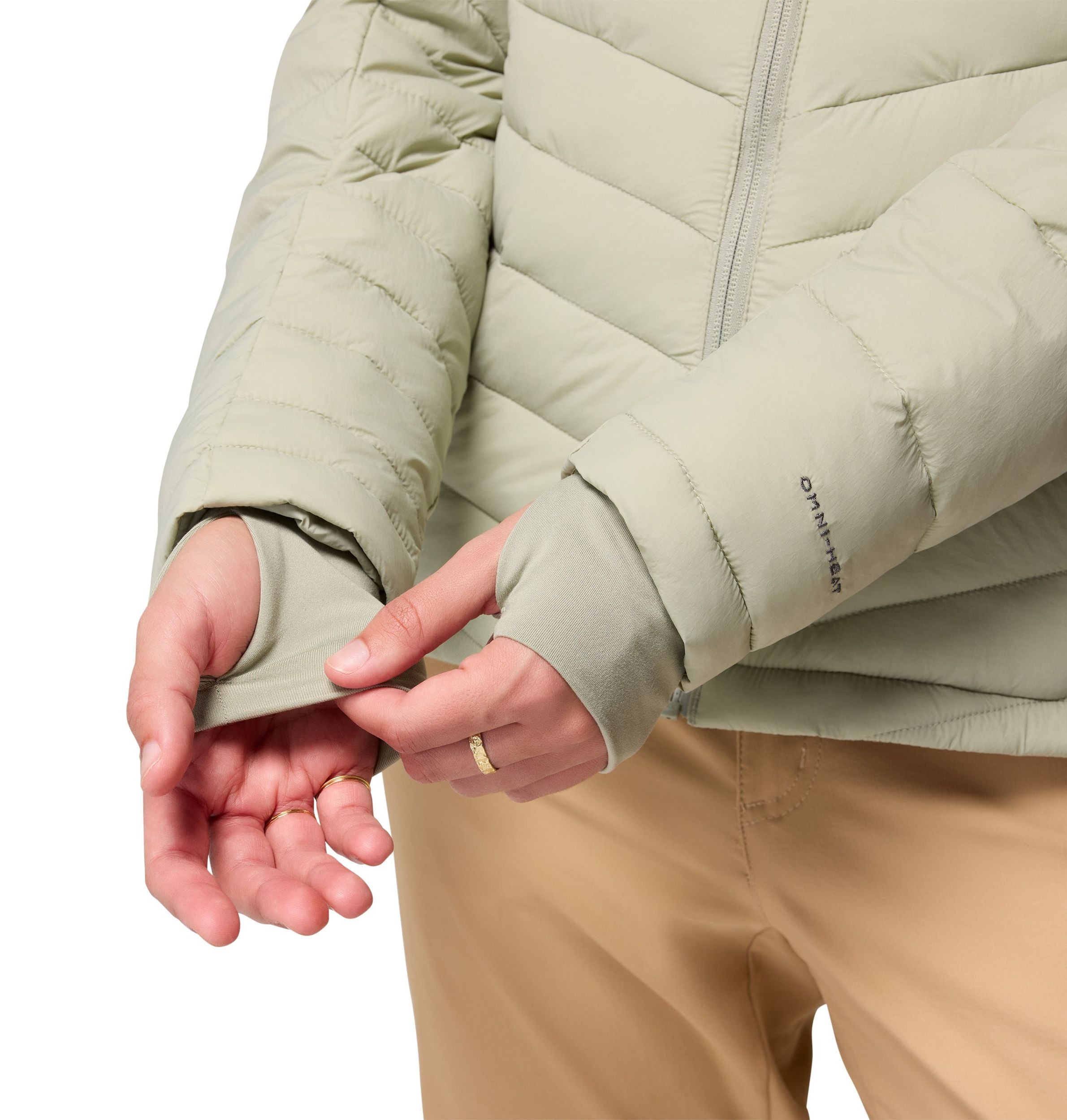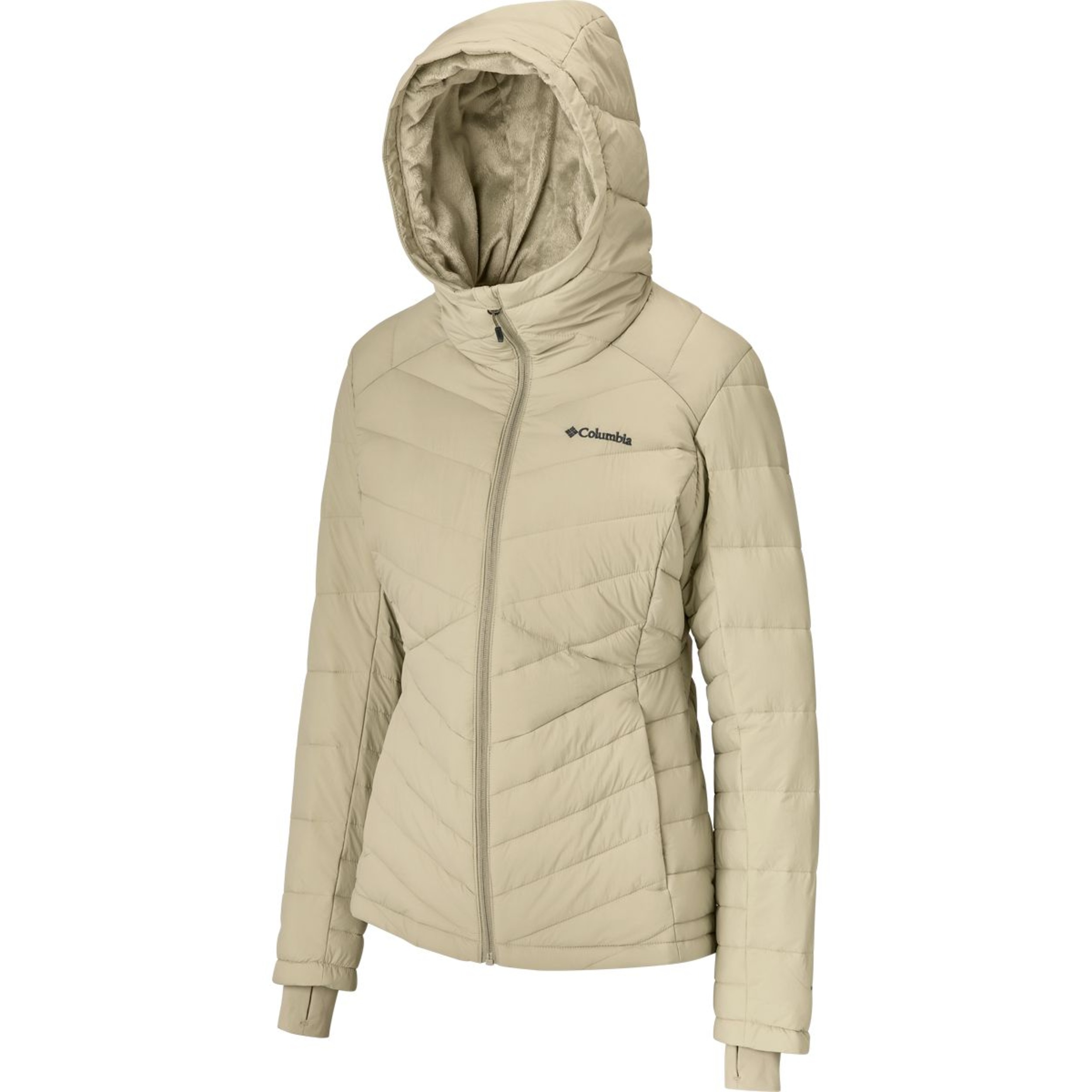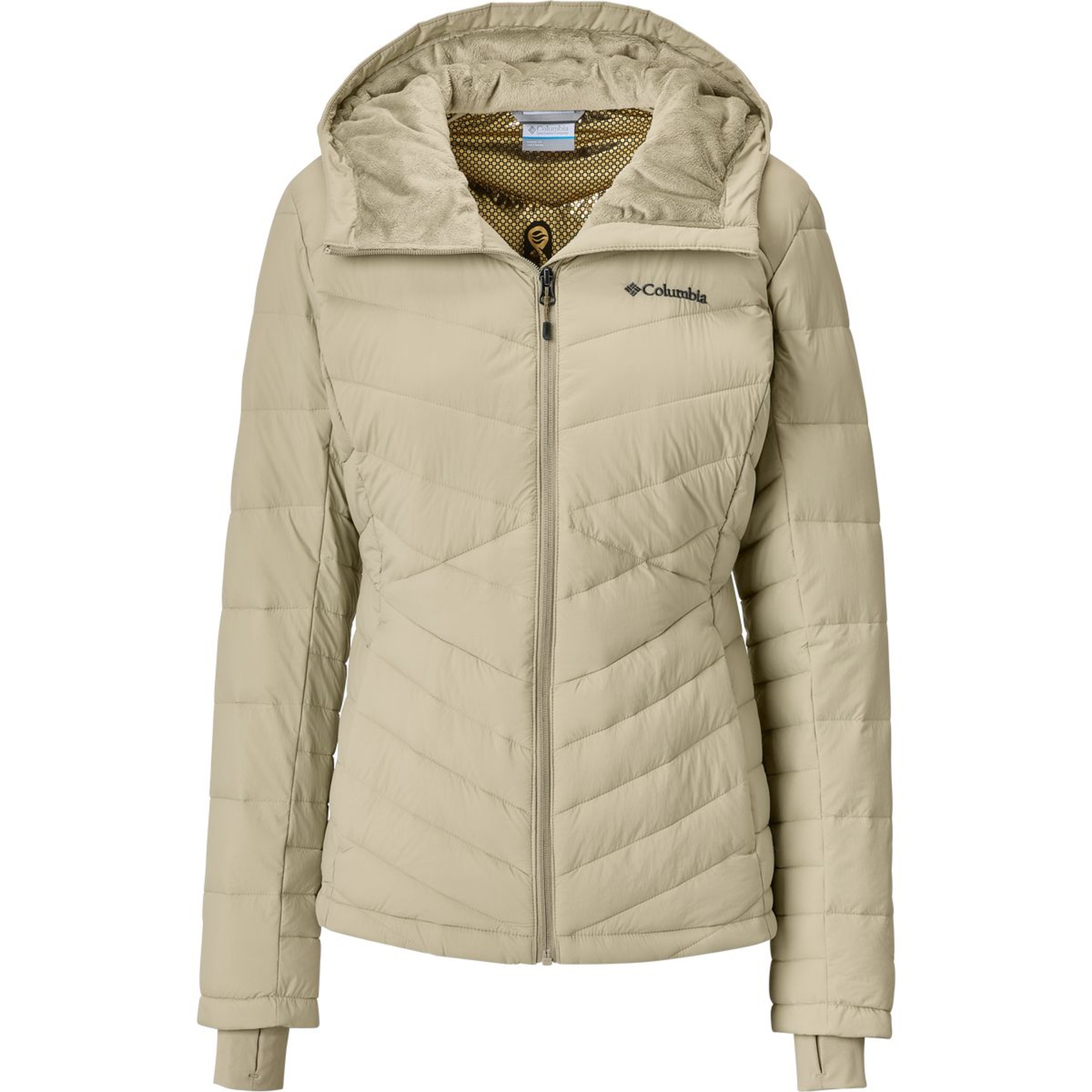 Stay warm and stylish with the Columbia Women's Joy Peak™ Insulated Jacket. It features a cozy fleece-lined hood and collar, and a water-resistant exterior with a subtle sheen. The thermal-reflective gold lining ensures optimal heat retention, making it an ideal choice for cold weather.