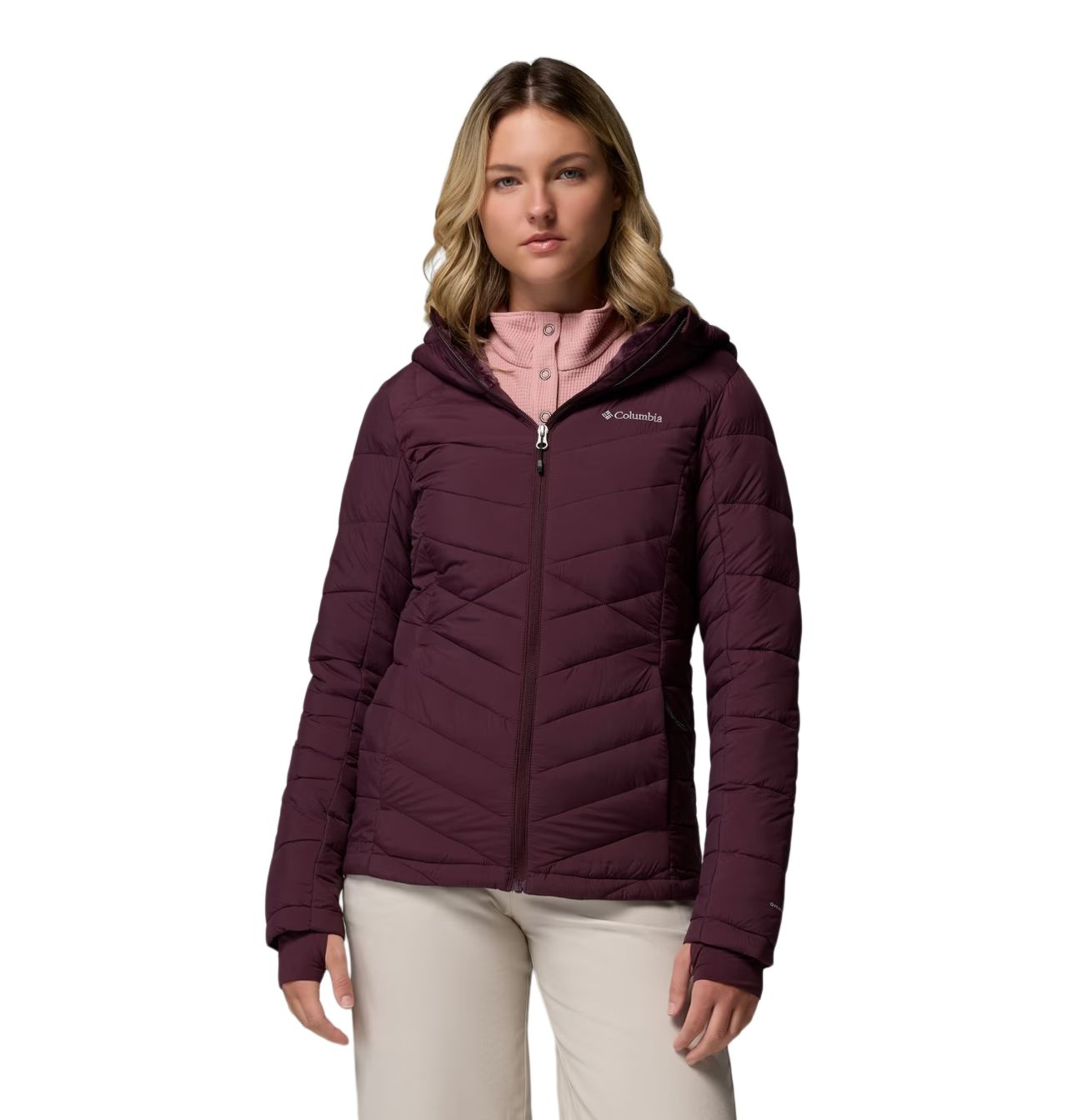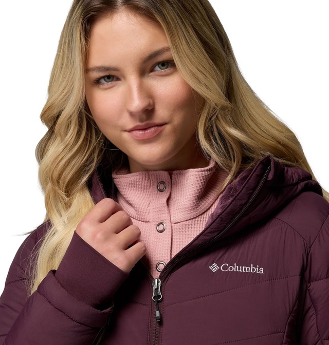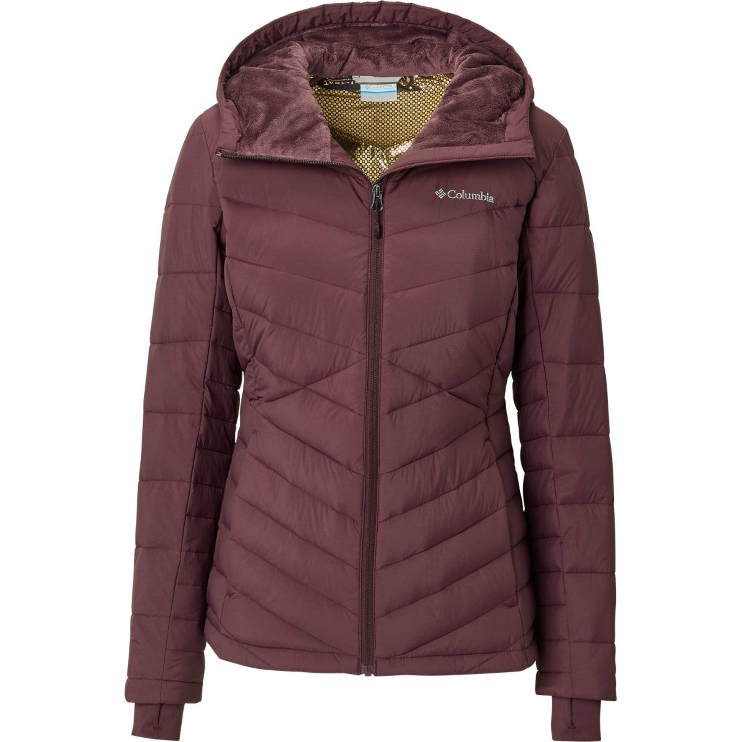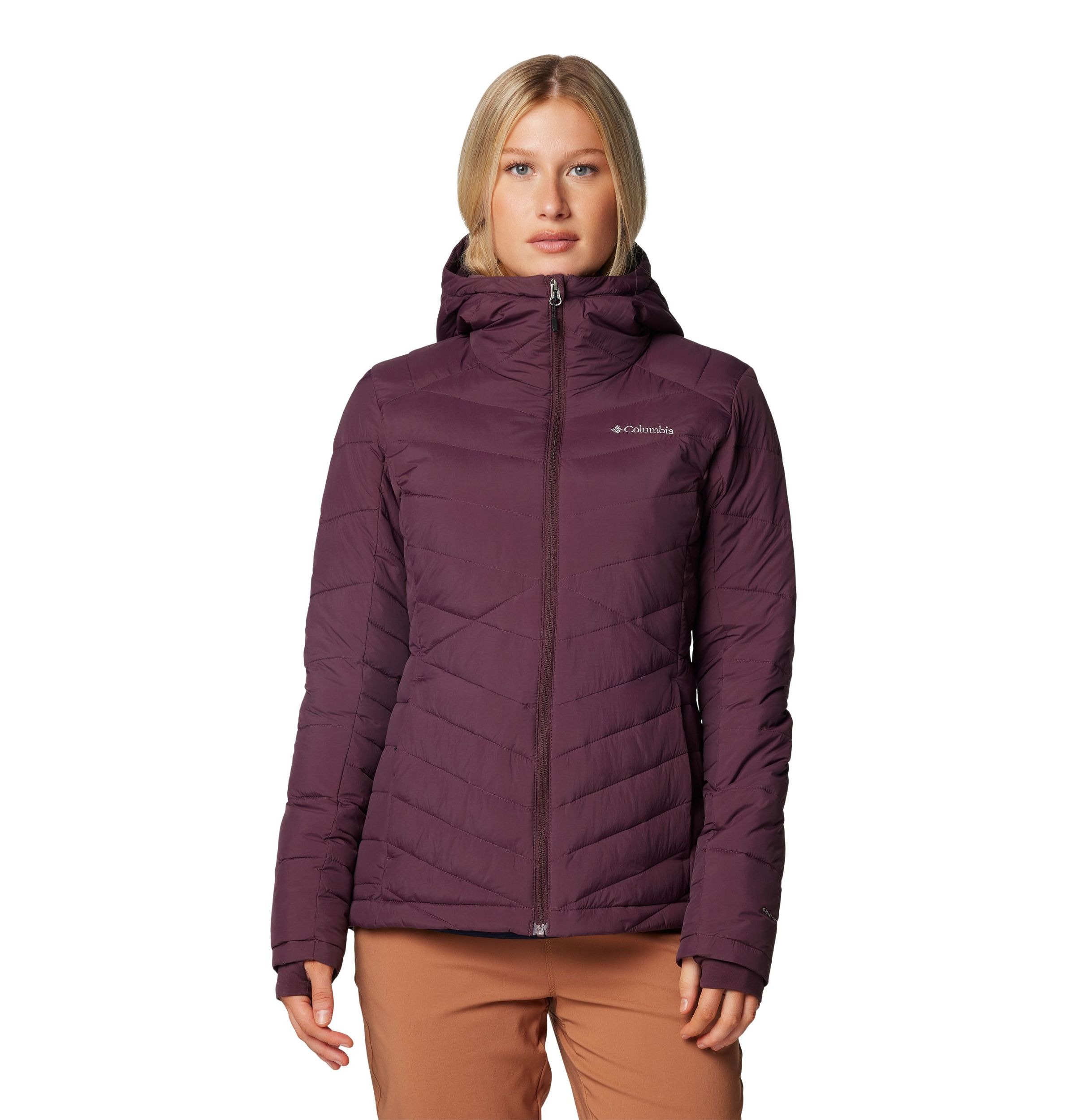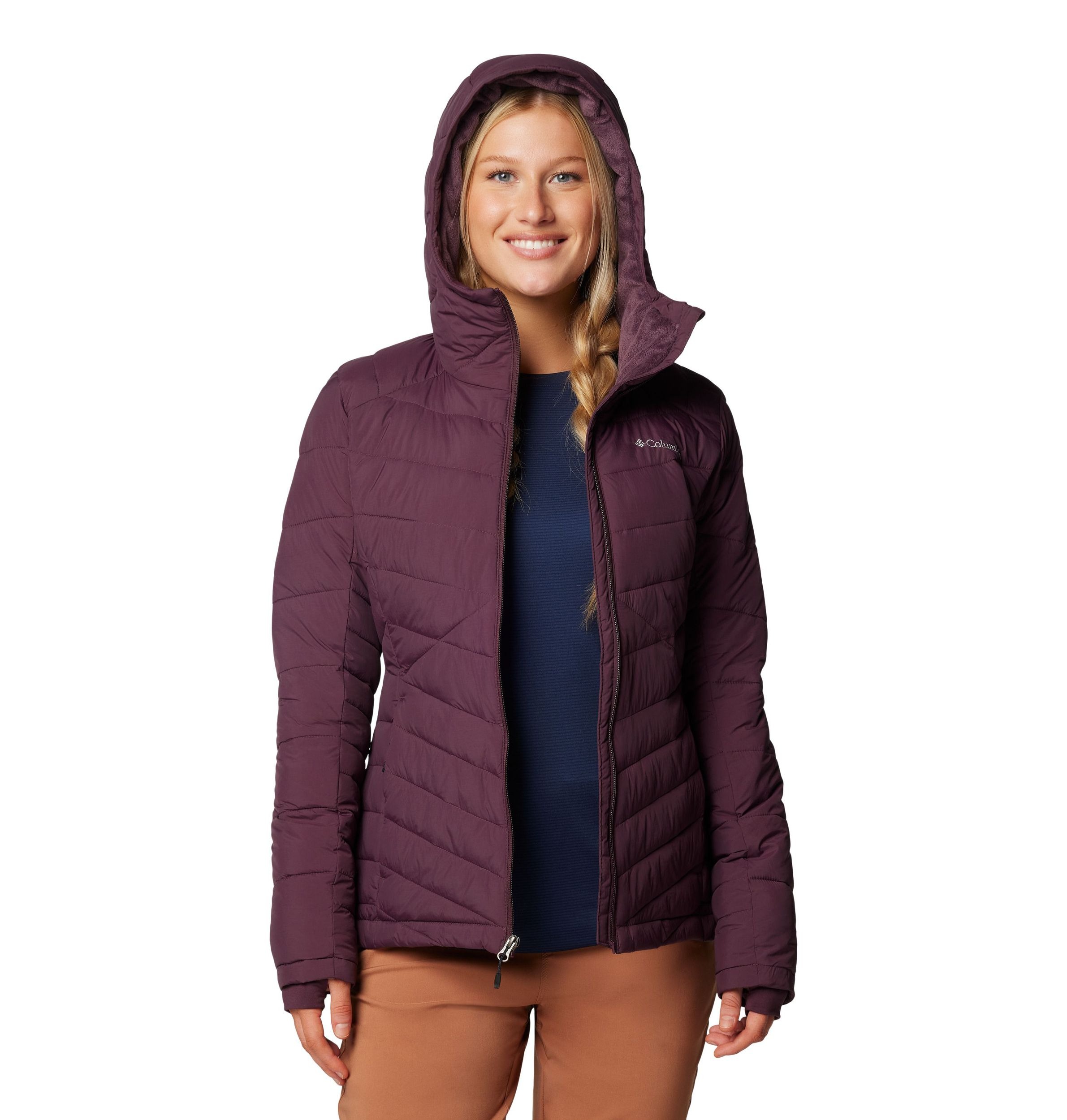 Stay warm and stylish with the Columbia Women's Joy Peak™ Insulated Jacket. Perfect for both urban and outdoor adventures, this jacket features a cozy fleece-lined hood and collar, along with a thermal-reflective lining to retain body heat. The water-resistant exterior keeps you dry.