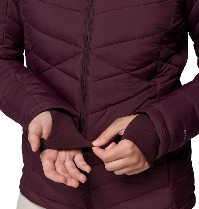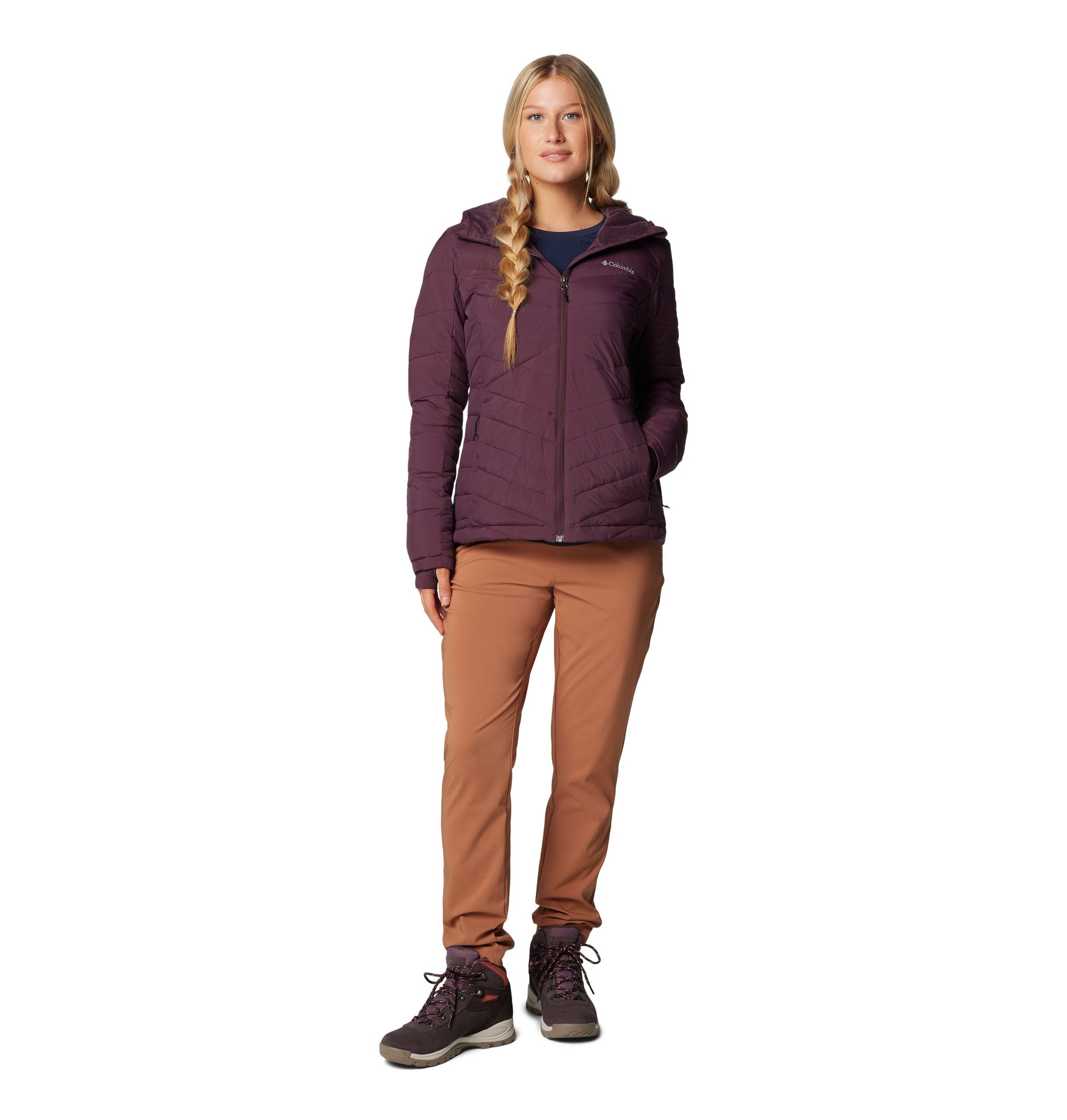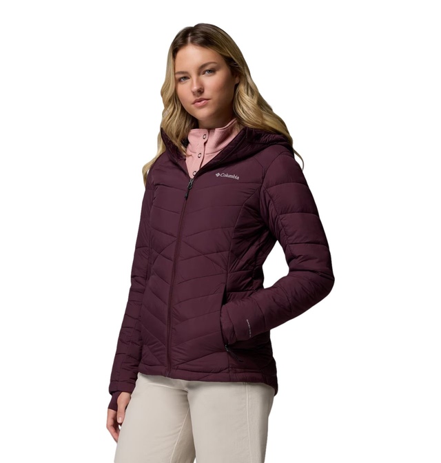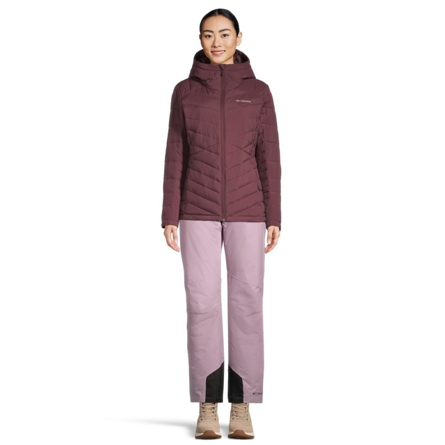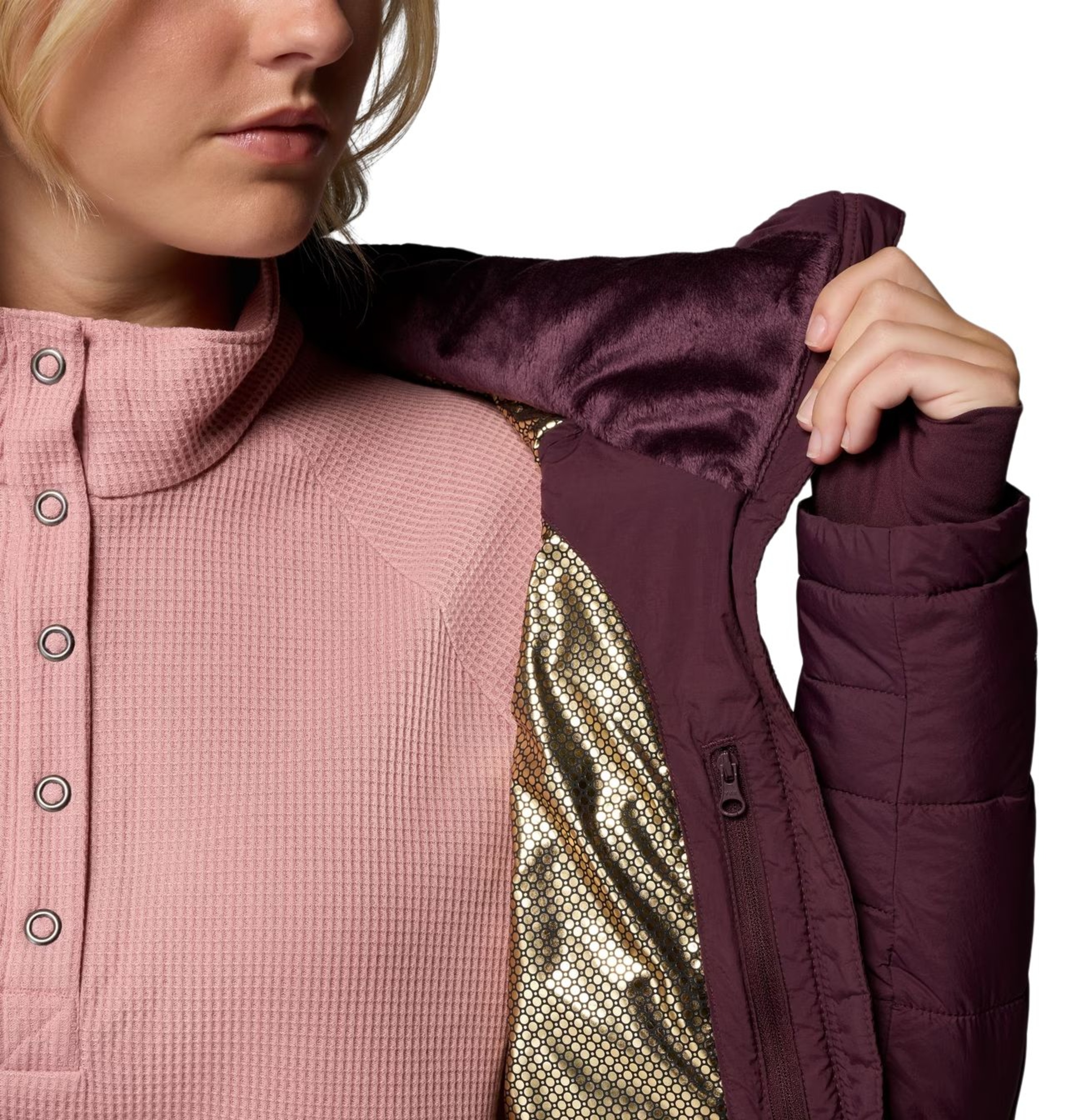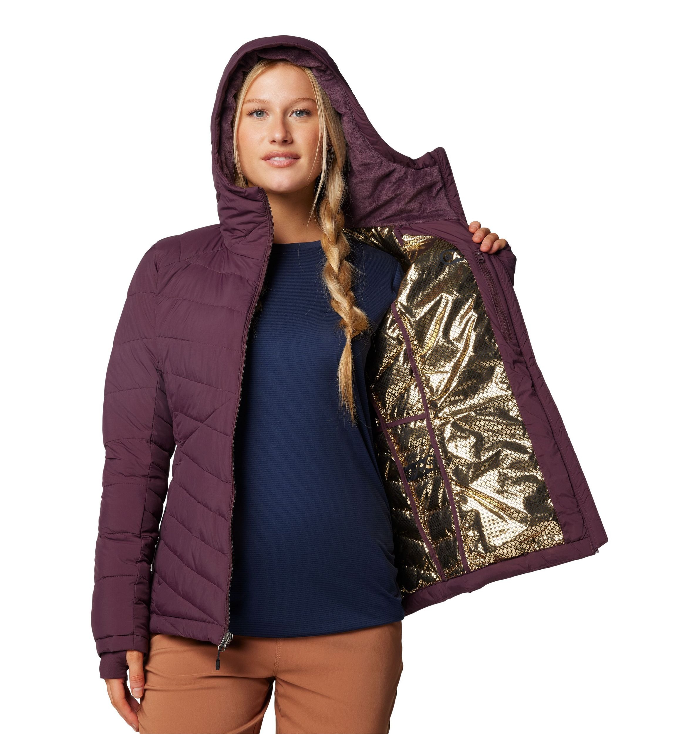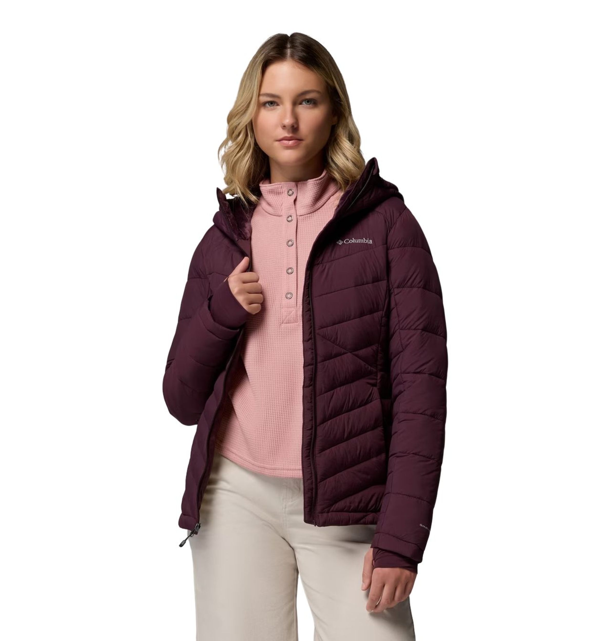 Stay warm and stylish with the Columbia Women's Joy Peak™ Insulated Jacket. Perfect for both urban and outdoor adventures, this jacket features a cozy fleece-lined hood and collar, along with a thermal-reflective lining to retain body heat. The water-resistant exterior keeps you dry.