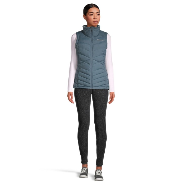 Stay warm and stylish with the Columbia Women's Joy Peak™ Insulated Vest. Perfect for both urban adventures and outdoor trails, it features a cozy fleece-lined collar and a thermal-reflective lining to retain body heat. The water-resistant exterior adds a touch of luxury with its subtle sheen.