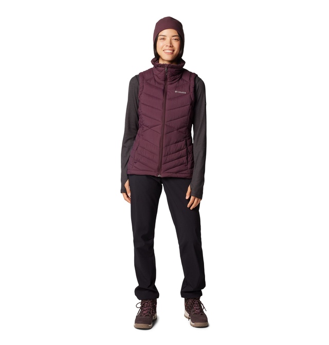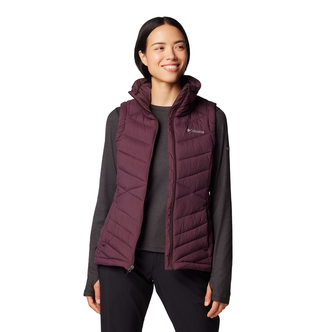 Stay warm and stylish with the Columbia Women's Joy Peak™ Insulated Vest. Perfect for both urban adventures and outdoor trails, it features a cozy fleece-lined collar and a thermal-reflective lining to retain body heat. The water-resistant exterior adds a touch of luxury with its subtle sheen.