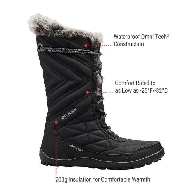 Keep your footing during cold-weather activities with the Columbia Women's Minx Mid III Non-Slip Winter Boots. The women’s winter boots feature Omni-Grip™ non-marking traction rubber outsoles for grip on slick terrain. They’re constructed with seam-sealed waterproof textile uppers and Omni-Tech™ waterproof breathable membranes to help keep your feet dry in the rain and snow. Omni-Heat™ reflective lining and 200g insulation add lightweight warmth, while the faux fur-lined collars and tongues provide an extra cozy feel. Designed to tackle temperatures as low as -32°C (-25°F), the Columbia women’s winter boots are finished with removable PU footbeds for underfoot cushioning.