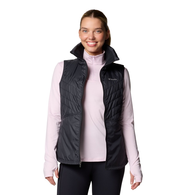 Stay warm and shielded from the wind with the Columbia Women's Mix It Around™ Outdoor Vest III Top. Its two-way zipper provides convenience and makes it easy to wear. This adaptable vest also features a combination of water-resistant polyester and cozy microfleece, making it perfect for layering during outdoor adventures.