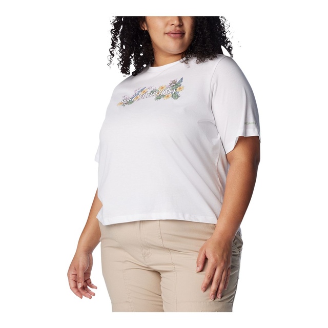 The Columbia Women's North Cascades Crew Neck T Shirt is ideal for warm, sunny days. This relaxed fit tee, crafted from soft cotton jersey, offers all-day comfort. The short sleeves and airy design keep you cool, while the beautiful floral print adds style to this women's tee.