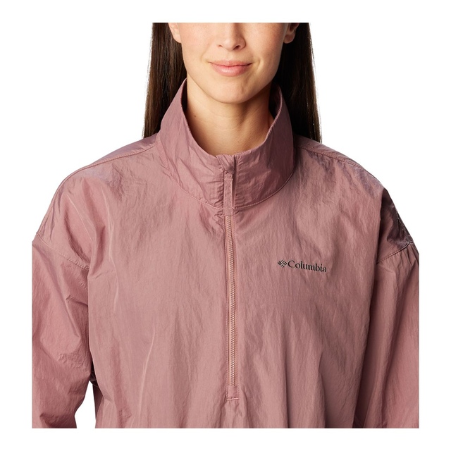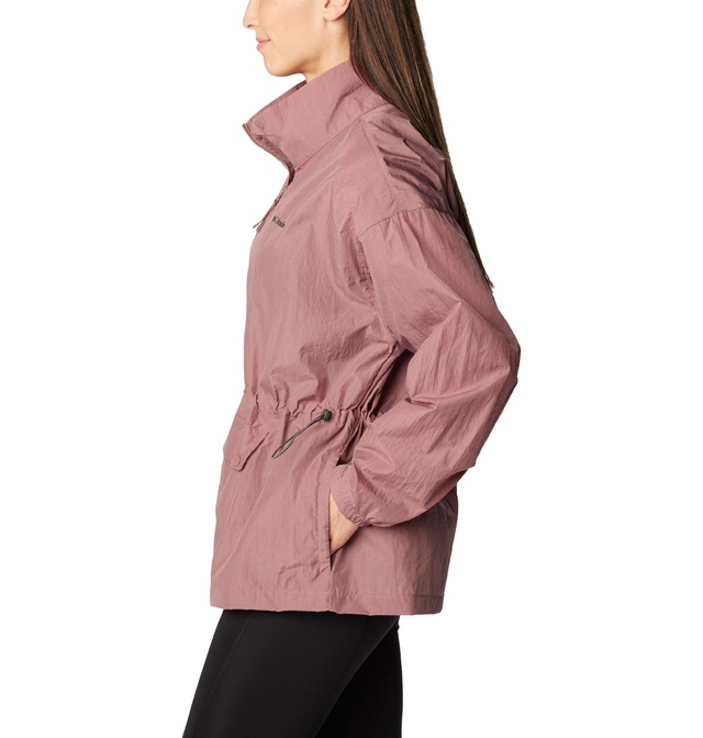 The stylish Columbia Women's Paracutie Anorak Windbreaker Jacket is ideal for a spring outing. It features water-resistant fabric, a back venting system and a mesh lining to ensure lasting breathability and comfort. Articulated sleeves and a drawcord adjustable waist enhance movement and fit. The kangaroo pocket on the Columbia windbreaker keeps your essentials handy.
