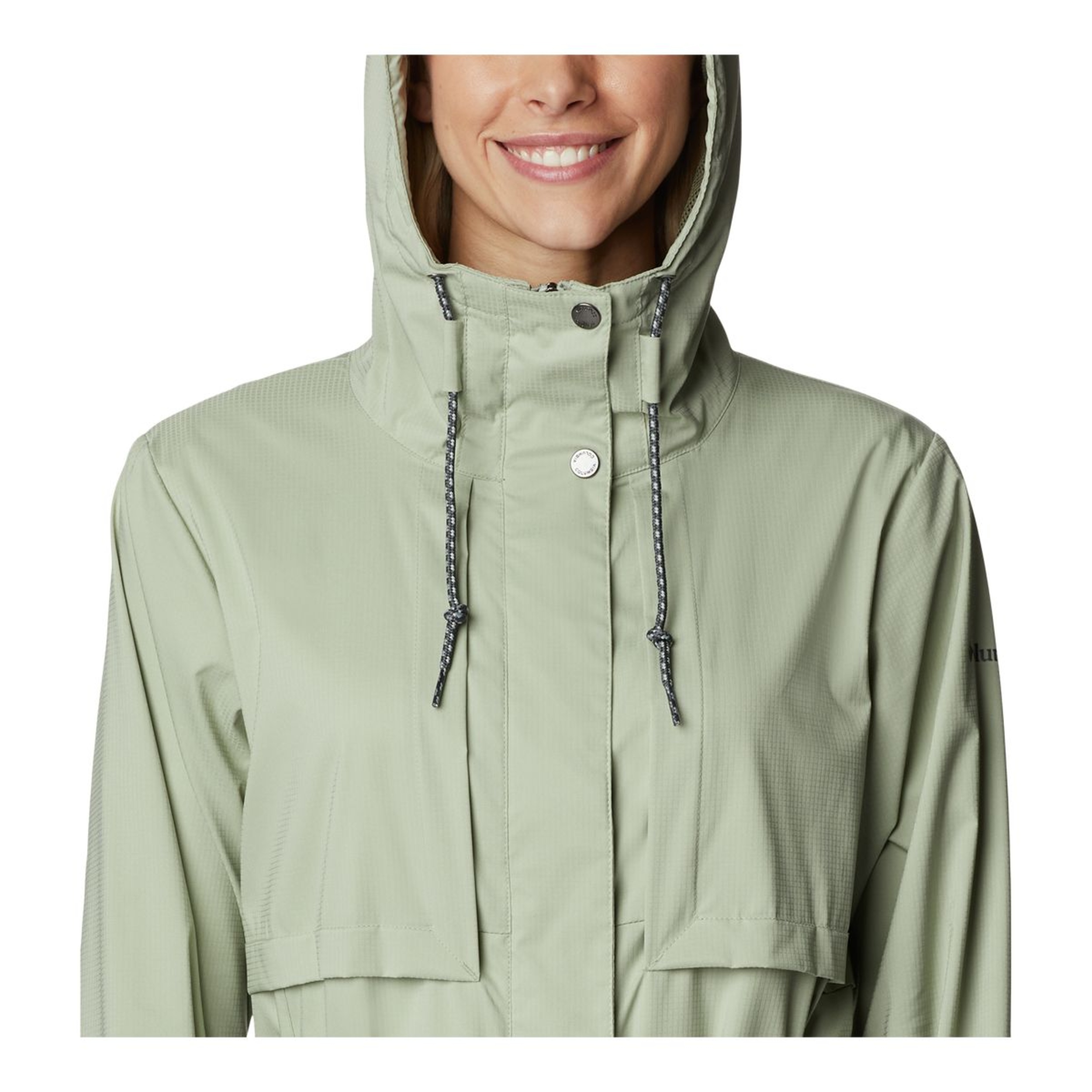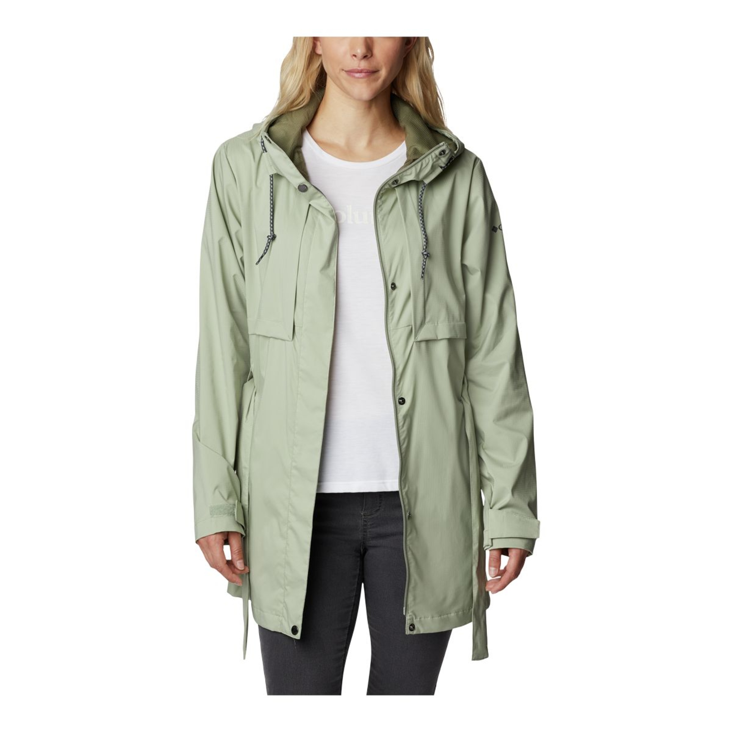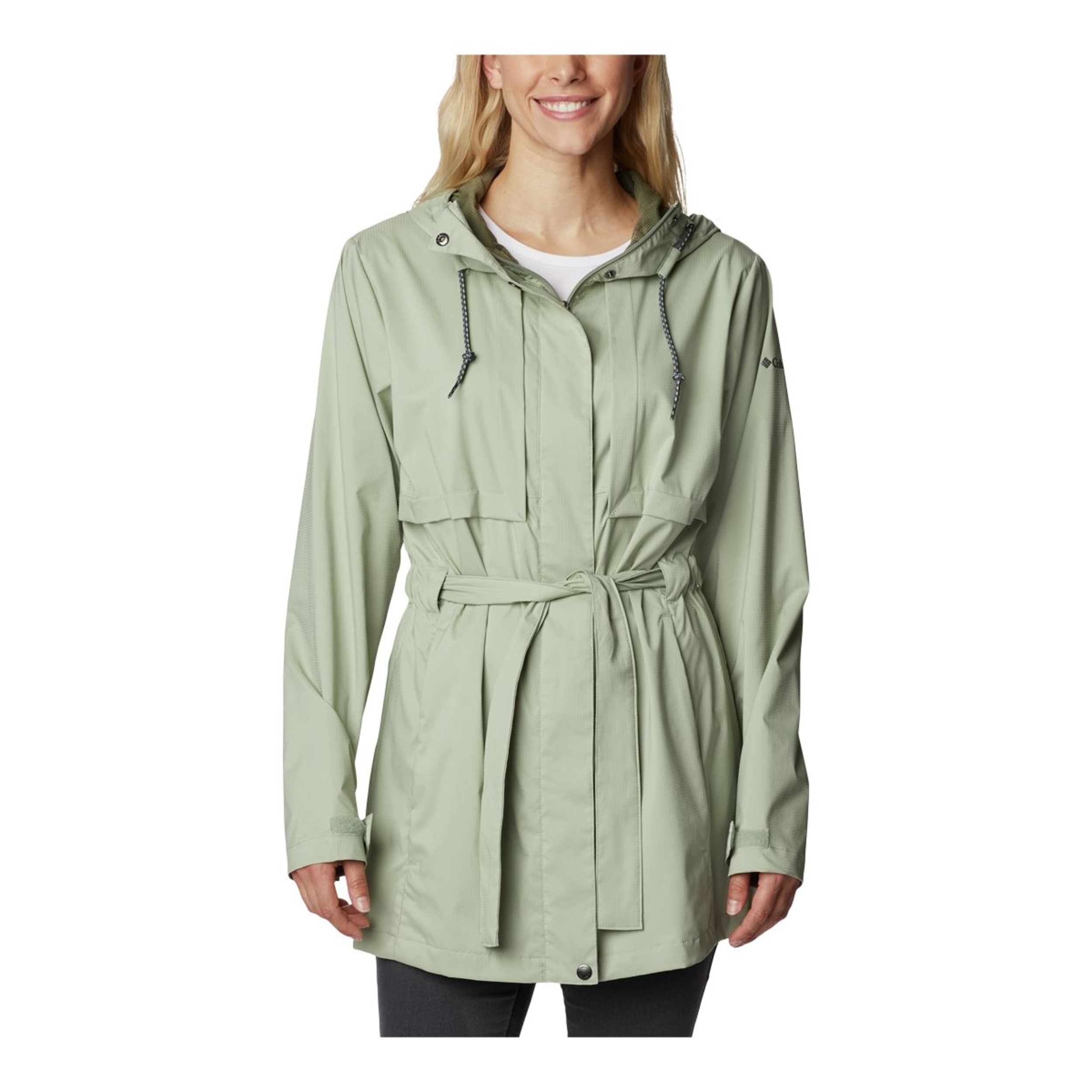 Keep dry wherever life takes you with the Columbia Women's Pardon My Trench Rain Jacket. Constructed with a waterproof exterior, it features an attached, adjustable hood and a removable belt for versatile styling. The innovative back venting system and zippered hand pockets on this Columbia jacket enhance functionality as well as comfort and protection in wet weather.
