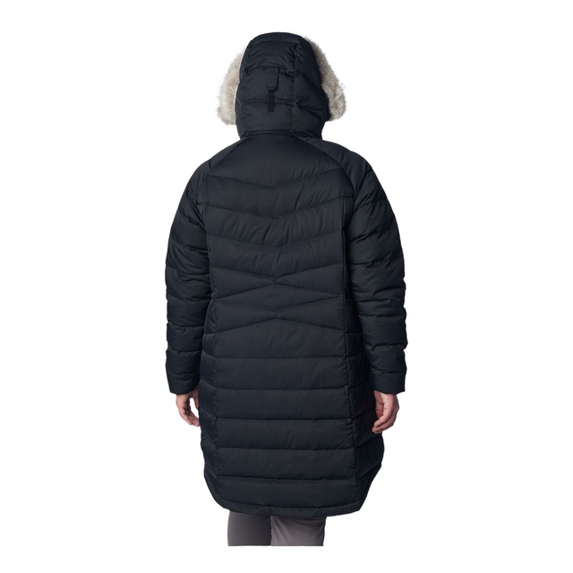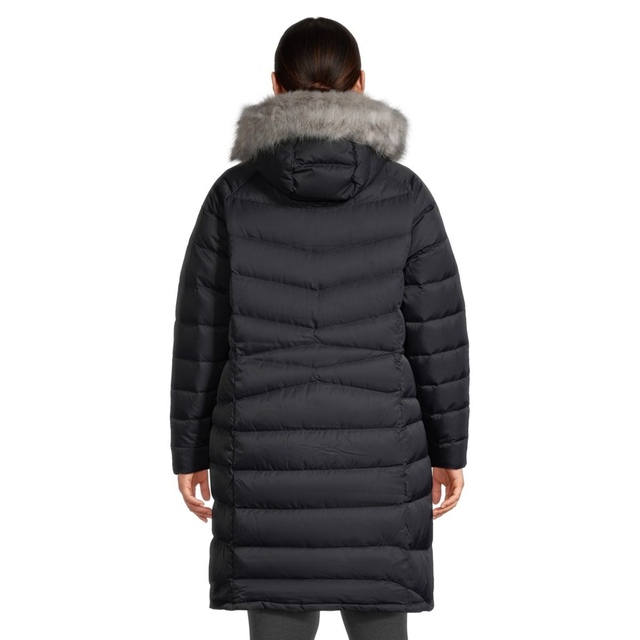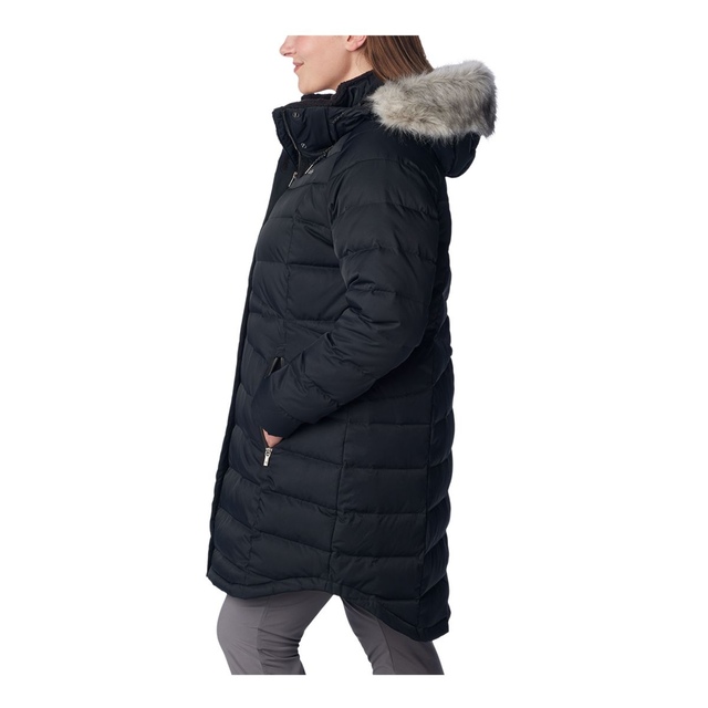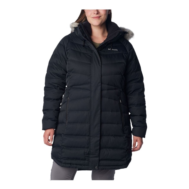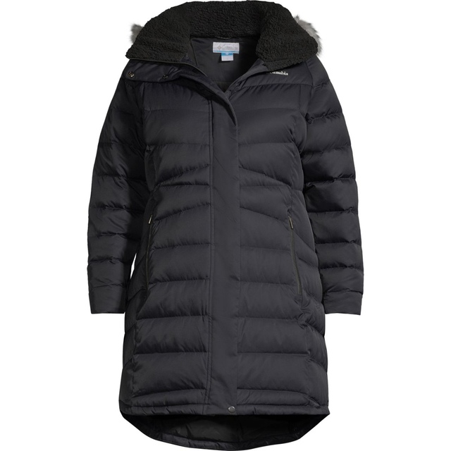 The Columbia Women's Plus Size Belle Isle Medium Down Jacket wraps you in premium warmth and style with 450-fill RDS-certified down insulation and plush faux fur trim. This toasty plus size down jacket features a removable, adjustable hood that provides customizable coverage.