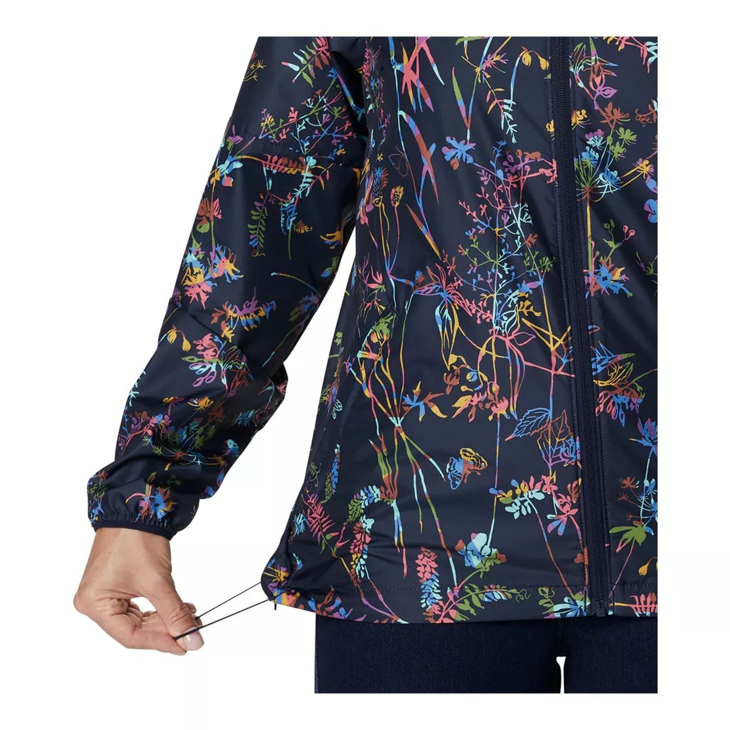 Size is true. It is very light and thin. Hood stays up when you want it to. This is water repellent not a raincoat but I was wearing it when I got drenched in a terrible storm and when I took it off my hair was dry thanks to the hood and my shirt was just slightly damp in a couple spots. I was impressed with how dry it kept me overall considering it is more just a windbreaker. It sits to waist length. A great purchase especially with the great sale price. I got the blue with the bright colored flowers. It is so pretty.