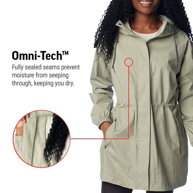 Stay dry and comfortable whatever the weather wearing this Columbia Women's Splash Side Rain Jacket. It's equipped with OMNI-TECH™ waterproof and breathable technology doubled up with critically sealed seams. This design includes adjustable drawcords at the hood and waist, elastic cuffs that fit close and pockets for your small essentials.