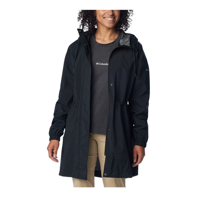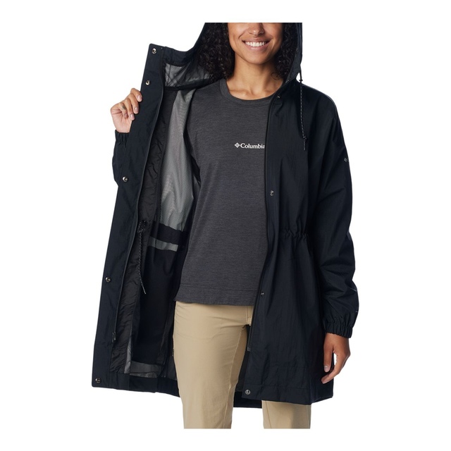 Get your shine on in this rain-ready jacket. It’s waterproof, breathable, and critically seam sealed to keep wetness out. The classic silhouette offers a cinchable waist, a comfortable taffeta lining, and a drop tail hem for extra coverage.