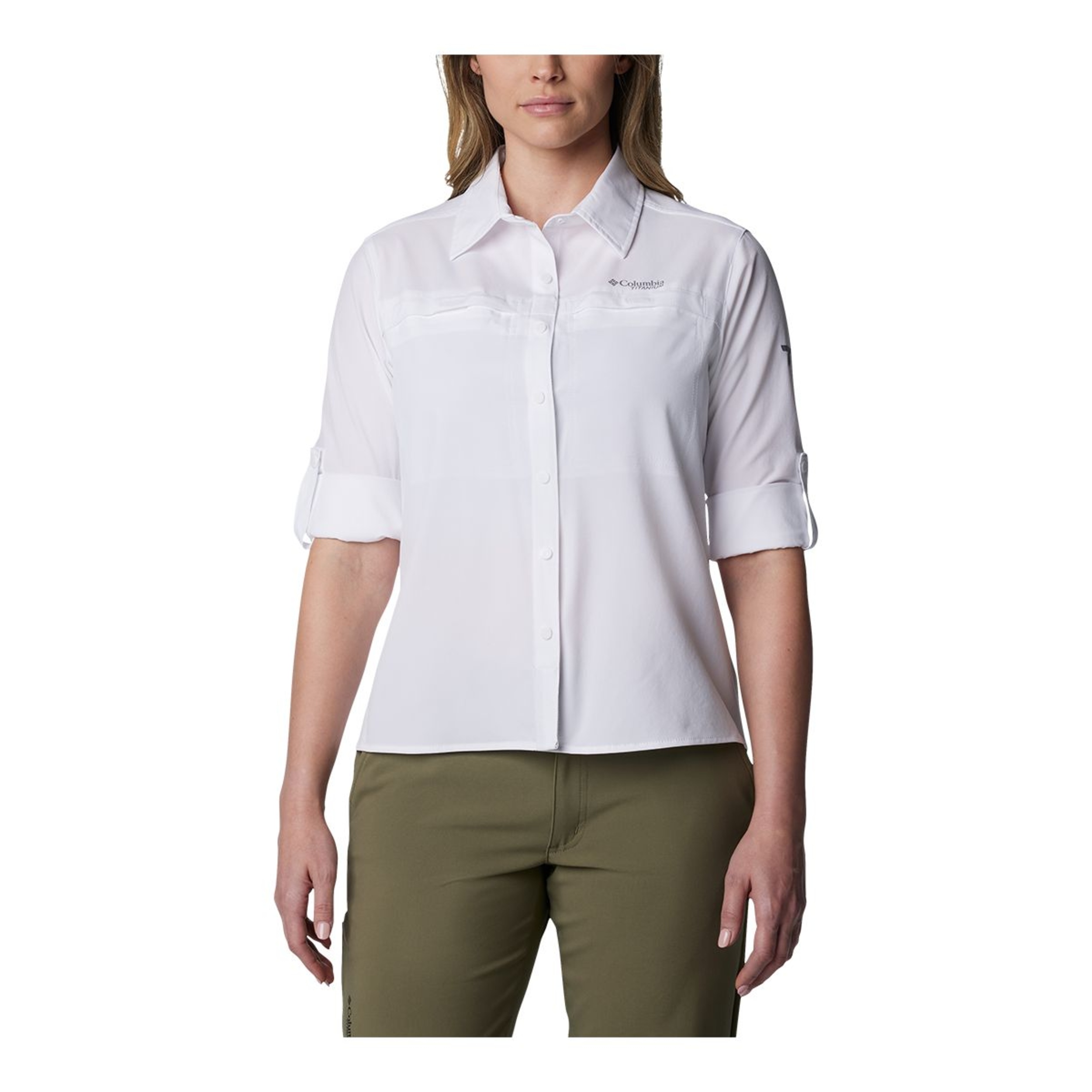 Dress for outdoor, or indoor comfort with the Columbia Women's Summit Valley Woven Shirt. Ideal in the elements, it features Omni-Shade™ UPF 50 sun protection and Omni-Wick™ technology for moisture management. Smart details of this Columbia shirt include roll-up long sleeves, secure pockets and a sunglass cleaning patch.