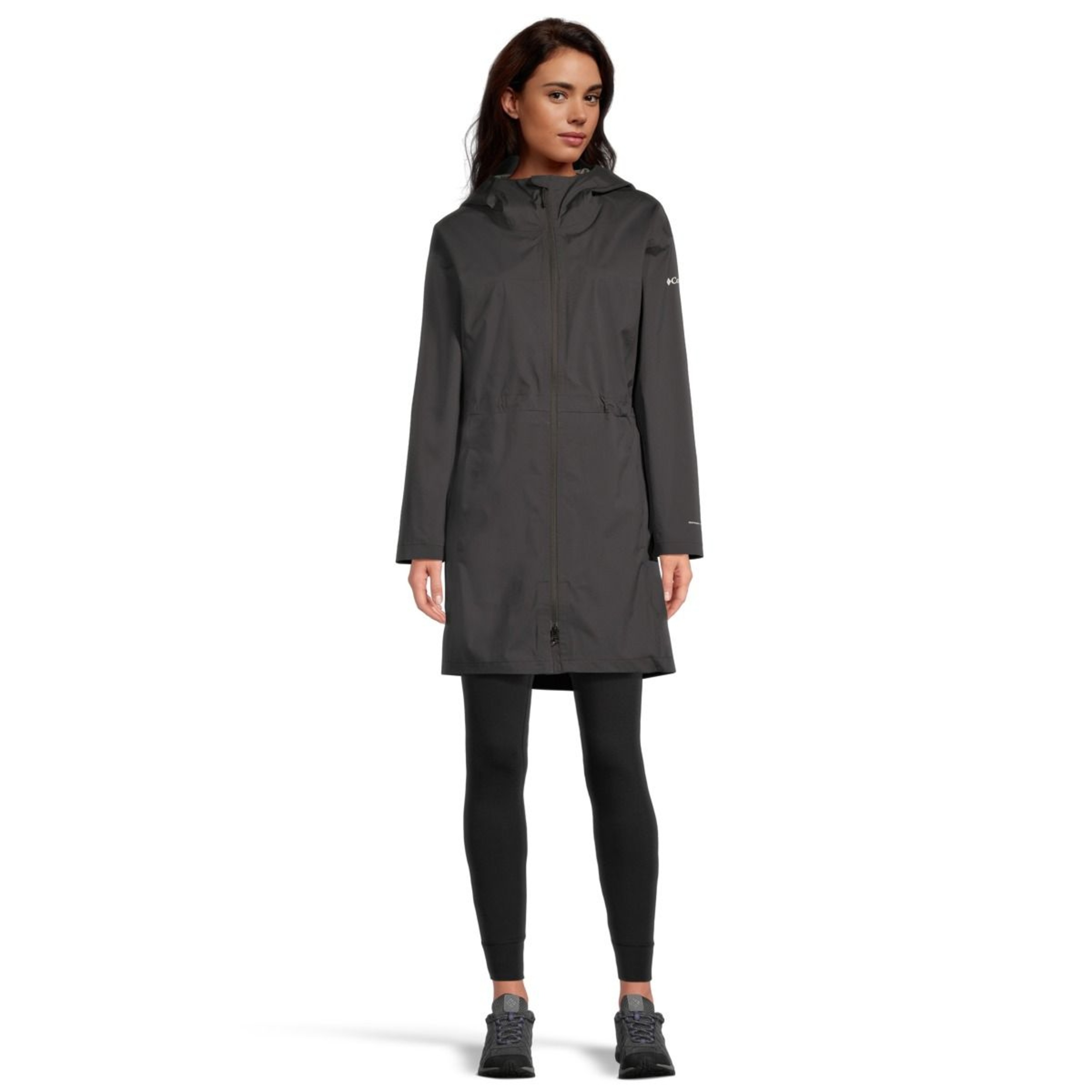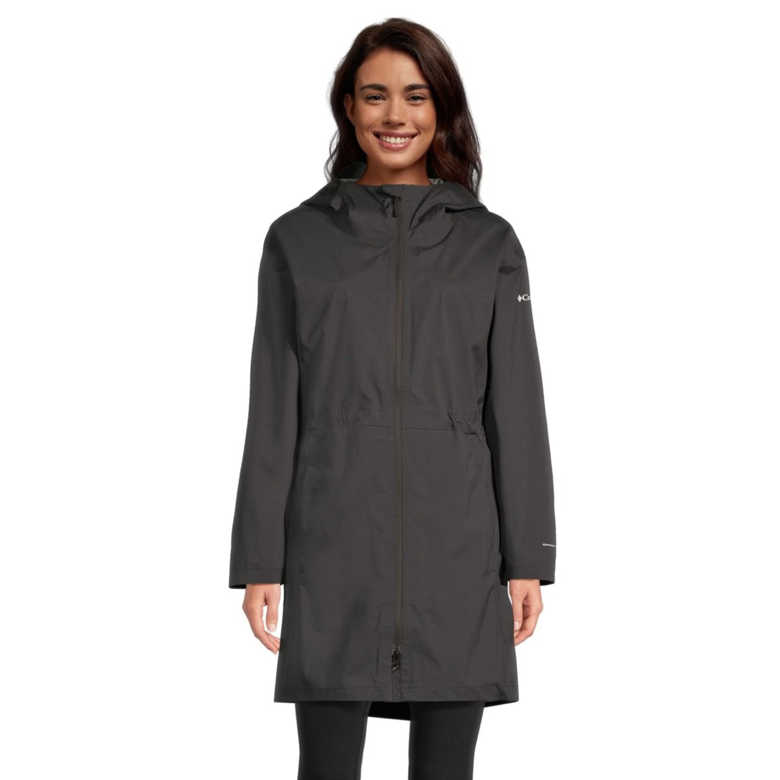During inclement weather, you'll enjoy your weekend adventures more wearing this Columbia long rain jacket. It's waterproof and breathable and features an adjustable hood with chin guard. Adjustability at the waist and cuffs lets you get a personal fit when you're off into changeable conditions.