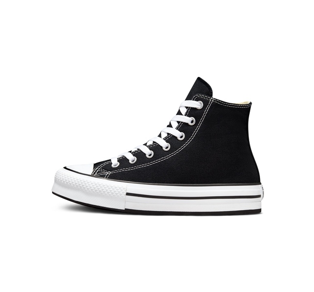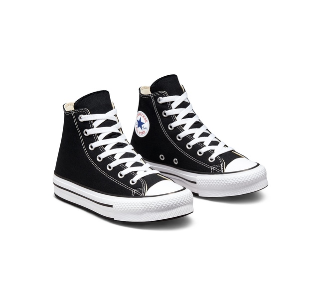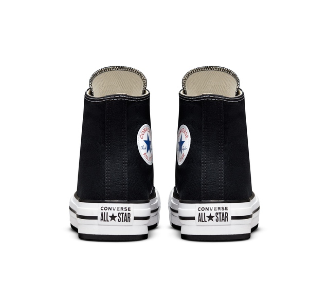 The high-top, court favorite gets redesigned for kids, with soft foam cushioning, plus softened stitches and linings. The classic canvas upper sits on top of an EVA foam platform midsole for elevated style. The look is finished with Chuck Taylor All Star classics like a star ankle patch, contrast midsole stripes, and diamond pattern outsole.