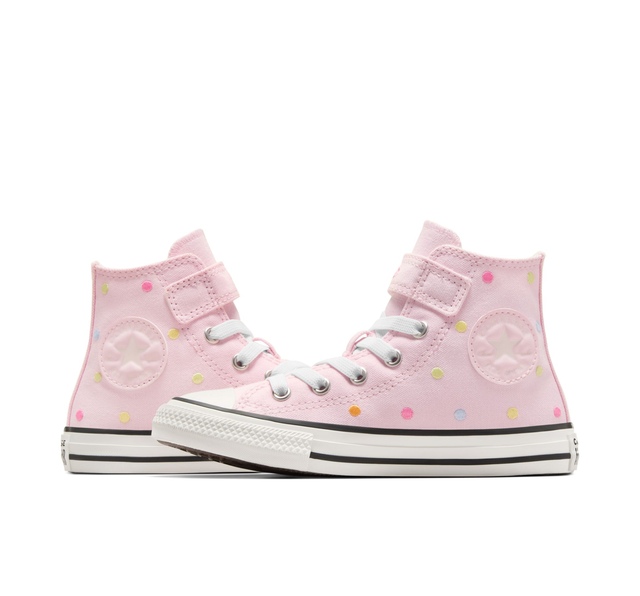 The Converse Kids' Pre-School Chuck Taylor All Star 1V Sneakers bring signature Converse style to the playground. This iconic low-top features a durable canvas upper, a rubber outsole for traction, and the classic rubber toe cap and striped midsole. An OrthoLite insole provides daylong cushioned comfort. The padded collar provides an easy ankle fit. Available in a rainbow of colors, these sneakers let little feet step out in bold, vintage-inspired style. Durable enough to withstand all-day play at school or the park, these kicks ensure tiny trendsetters stay comfortable and cool.