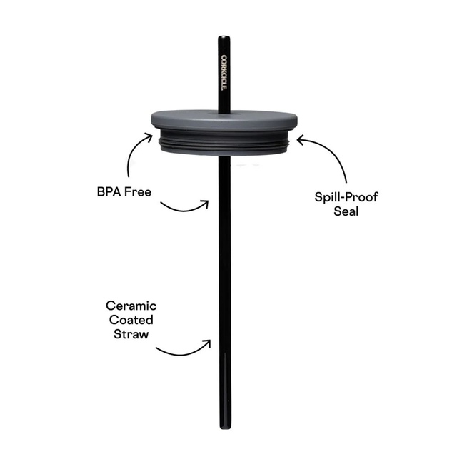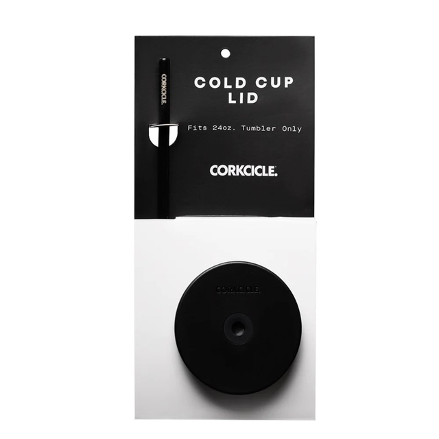 The Corkcicle Cold Cup Lid features a ceramic coated straw for a smooth, comfortable sipping experience from your favorite 24 oz Corkcicle tumbler.