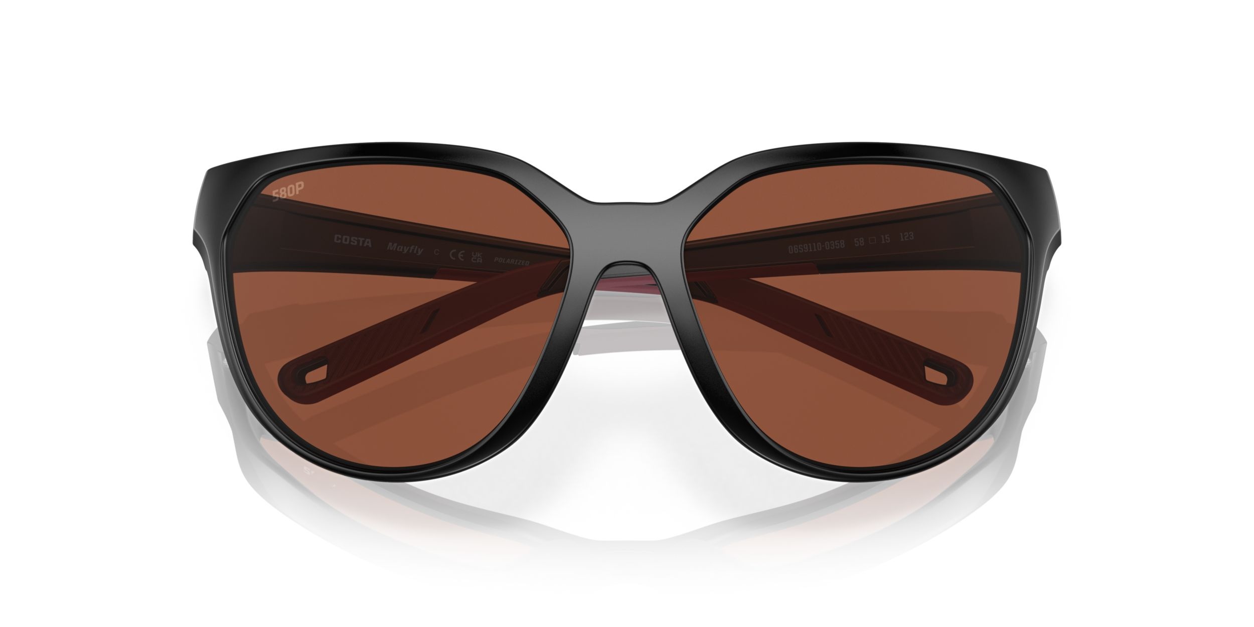 The Costa Polarized Mayfly 580P Sunglasses is a female, progressive hybrid design made from light weight durable bio-resin for sustainability. In a thybrid round-cateye deisgn, these Costa sunglasses offer double injected temples and vented adjustable nose pads produces a wide field of view. Complete with maximum light blockage, perfect for long days on the water.