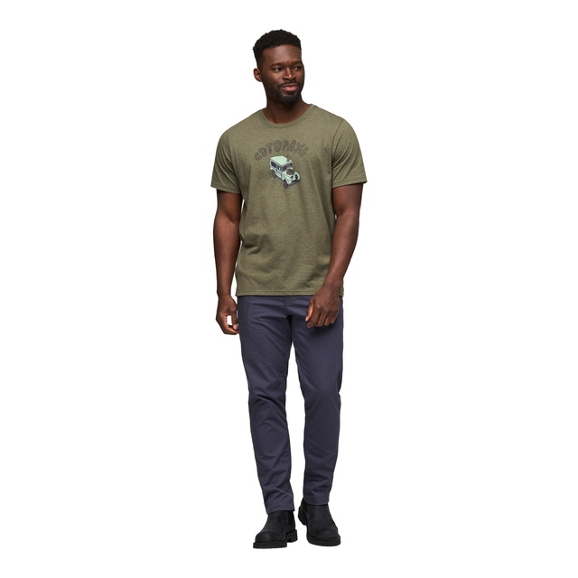 The Cotopaxi Men's Coto-Pilot T Shirt is a versatile and sustainable option for everyday wear. Crafted from a soft, breathable blend of 60% organic cotton and 40% recycled polyester, this regular-fit t-shirt offers exceptional comfort and durability.