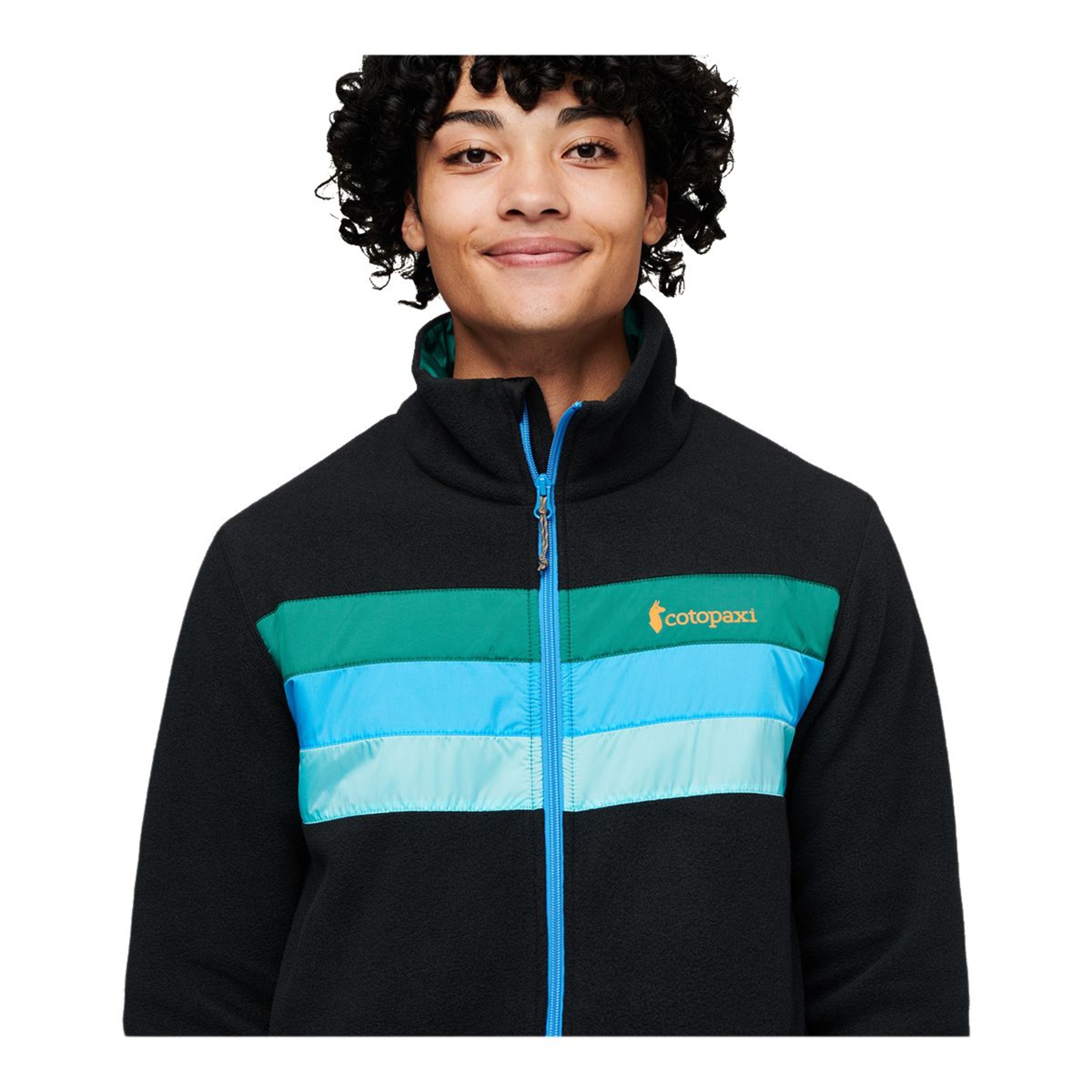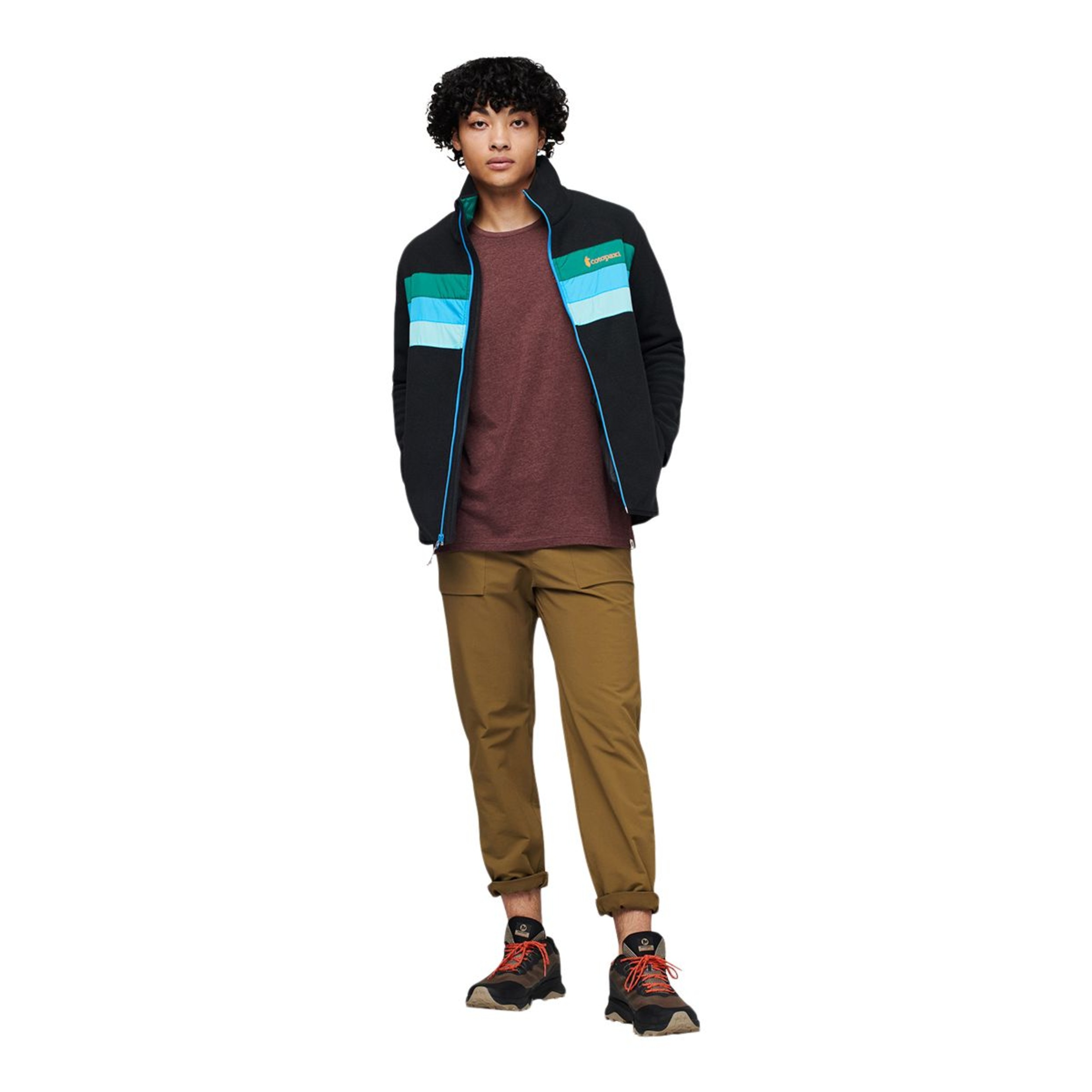 A model of sustainable fashion, the Cotopaxi Men's Teca Fleece Full Zip Jacket features 100% recycled fleece. Designed for layering or solo wear, it features an elastic binding hem and cuffs for enhanced fit and warmth. This Cotopaxi fleece jacket is an eco-conscious choice for outdoor comfort.