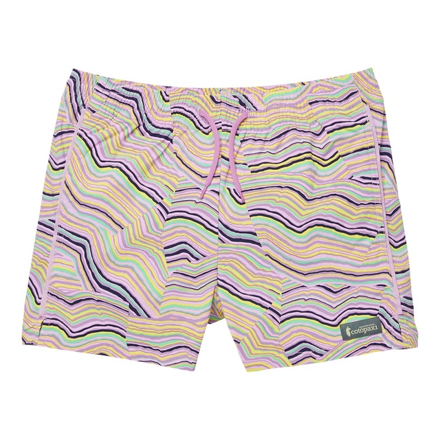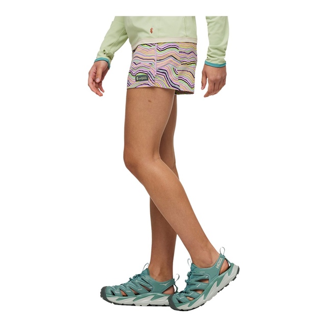 The Cotopaxi Women's Brinco 3-inch Print UPF Shorts are crafted from quick-drying recycled nylon, providing comfort and UPF sun protection. Designed for active lifestyles, these shorts offer freedom of movement, ideal for hiking, swimming, or lounging.