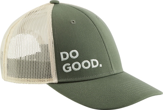 The Cotopaxi Women's Do Good Trucker Hat is a classic 5-panel cap that encourages making a positive impact. Crafted from 100% recycled polyester fabric in a Fair Trade Certified factory, this trucker hat promotes sustainability while providing functional sun protection.