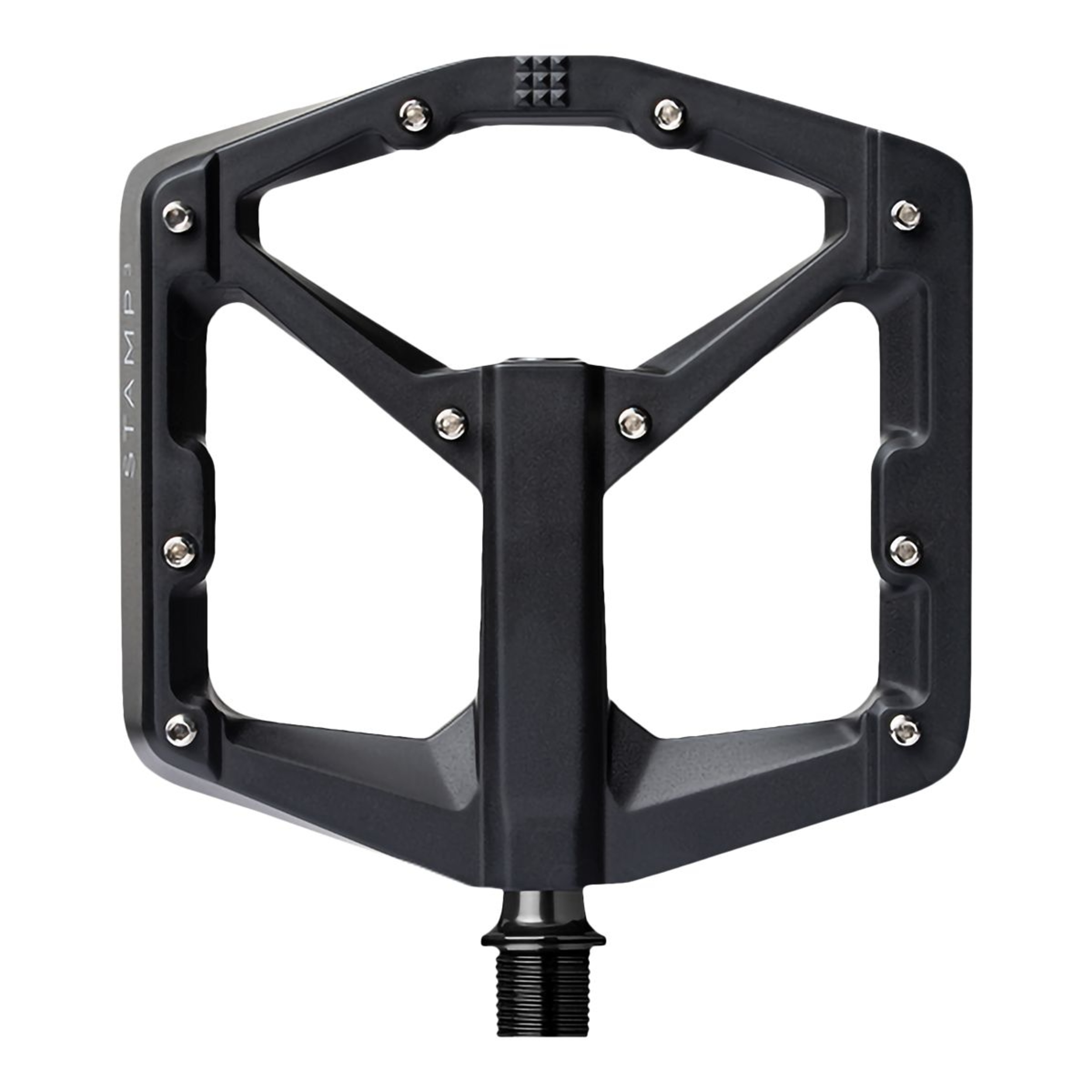 Size specific magnesium platform pedal provides optimal shoe/pedal interface.