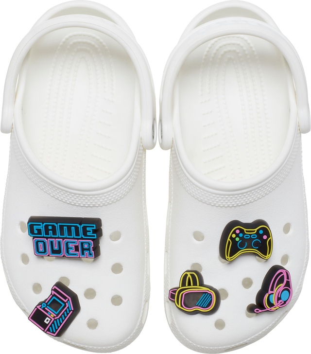Pop some personality into your shoes with these Lights Up Neon Gamer 5 Pack Jibbitz™ charms. They are the perfect addition to your favourite pairs of clogs, slides, and more.