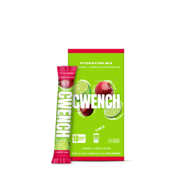 Quench your thirst and replenish your body with Cwench Hydration's Cherry Lime drink mix. This 10-count box is perfect for tossing in your gym bag or keeping at your desk for a midday pick-me-up. What sets Cwench apart? It's got zero sugar but doesn't skimp on flavour, thanks to natural cherry and lime extracts. Plus, it's packed with seven essential electrolytes to keep you hydrated whether you're powering through a workout, battling a hangover, or just trying to survive a scorching summer day. No need to worry about artificial nasties either - Cwench uses only natural flavours and colours. So next time you're feeling parched, reach for a Cwench and give your taste buds and your body a refreshing boost. It's hydration, but make it fun.