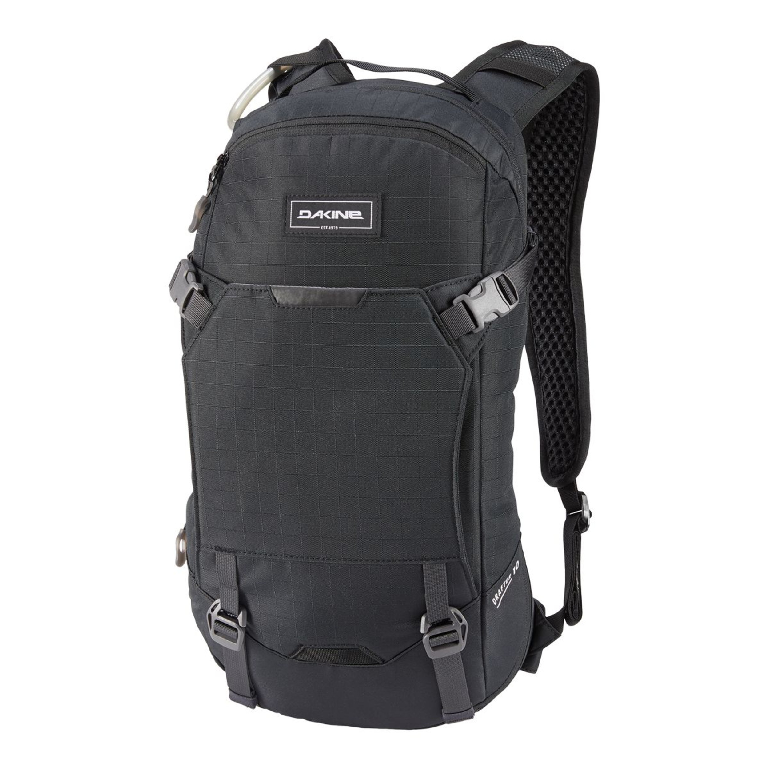 The Dakine Drafter Hydration Pack is designed to meet the demands of today's mountain bikers. Lightweight and comfortable, it features a magnetic hydration buckle with a three-litre Hydrapak® lumbar reservoir for a lowered centre of gravity. The backpack also includes a quick-stash on the shoulder harness for sunglasses, an organizer pocket for tools, and straps for carrying a helmet and pads.