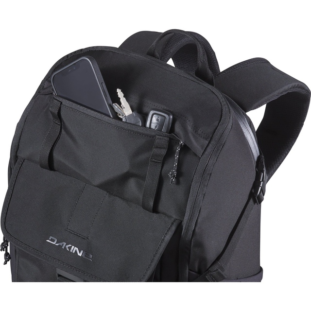 Stay organised and prepared with the Dakine Motive 30L Backpack. Crafted from 100% recycled nylon, it offers a spacious main compartment, interior stash pockets, and a fleece-lined top pocket for easy access. A padded sleeve fits laptops and tablets, while adjustable straps ensure comfort. It is also equipped with water-resistant zippers and a removable rain cover to protect your gear.