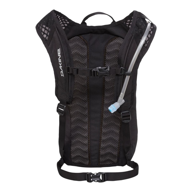 The Dakine Youth Session Hydration Pack is designed for young riders, offering a minimal yet feature-rich design. With a breathable Air Flow back panel and airy shoulder straps, it ensures comfort and dryness on the trail. Made from 100% recycled polyester, this lightweight pack has a narrow profile for stability. The six-liter capacity includes an exterior organizer pocket, fleece-lined pouch for sunglasses or phone and a spacious main compartment. Hydration is provided by a two-liter Hydrapak reservoir with a drinking hose and Phaser bite valve. The hydration pack's adjustable sternum strap features an integrated rescue whistle for added safety.