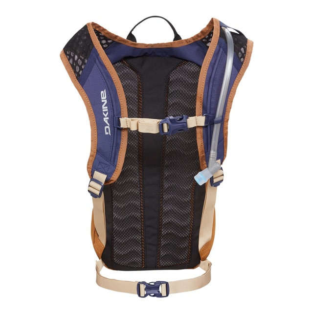 The Dakine Youth Session Hydration Pack is designed specifically for young riders, offering a minimal yet fully functional design. It features a breathable Air Flow back panel and breezy shoulder straps for comfort and dryness. Made from 100% recycled polyester, this lightweight and durable pack has a narrow profile for stability. The six liter storage capacity includes an exterior organizer pocket, fleece-lined pouch for sunglasses or phone, and a spacious main compartment. Hydration comes from a two-liter Hydrapak reservoir with a drinking hose and Phaser bite valve. An adjustable sternum strap on the pack features an integrated rescue whistle for safety on the trail.