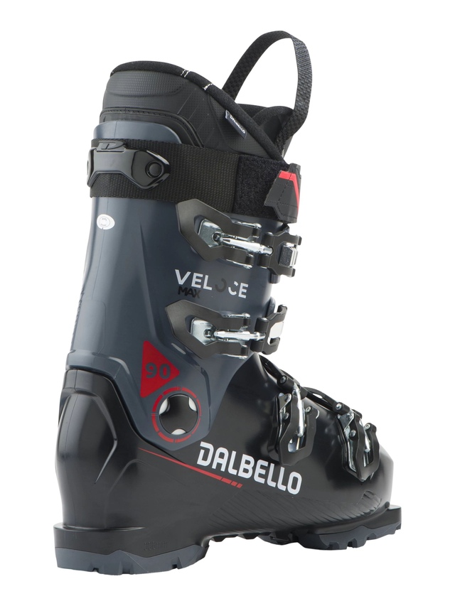 The Dalbello Veloce Max Men's 90 Flex Ski Boots are ideal for skiers with wider feet who want to enhance their performance on the slopes. These wide feet ski boots feature a 104 mm last and a sporty flex index of 90, providing a custom fit and excellent control. The GripWalk outsoles ensure easy walking.