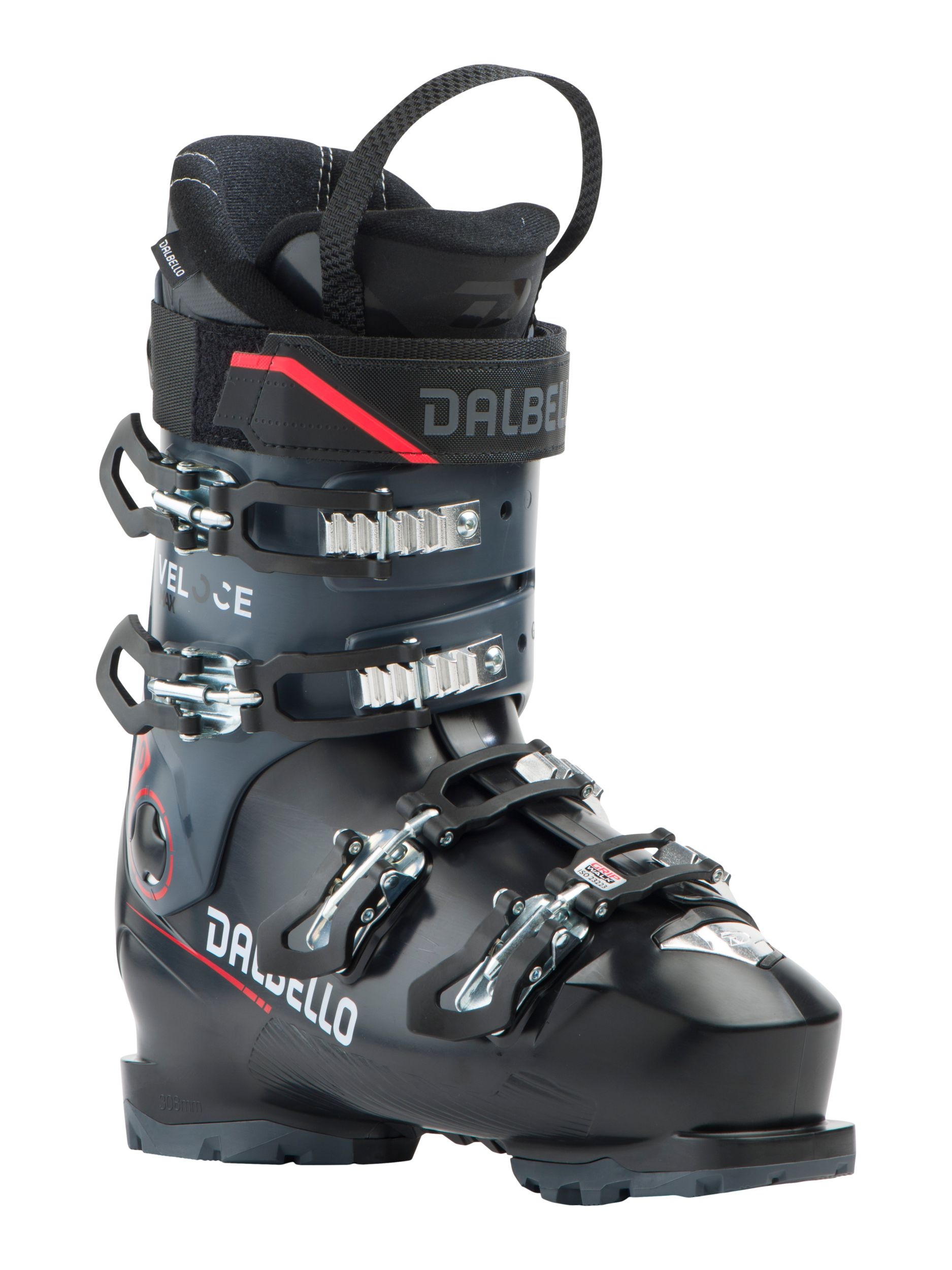 The Dalbello Veloce Max Men's 90 Flex Ski Boots are ideal for skiers with wider feet who want to enhance their performance on the slopes. These wide feet ski boots feature a 104 mm last and a sporty flex index of 90, providing a custom fit and excellent control. The GripWalk outsoles ensure easy walking.
