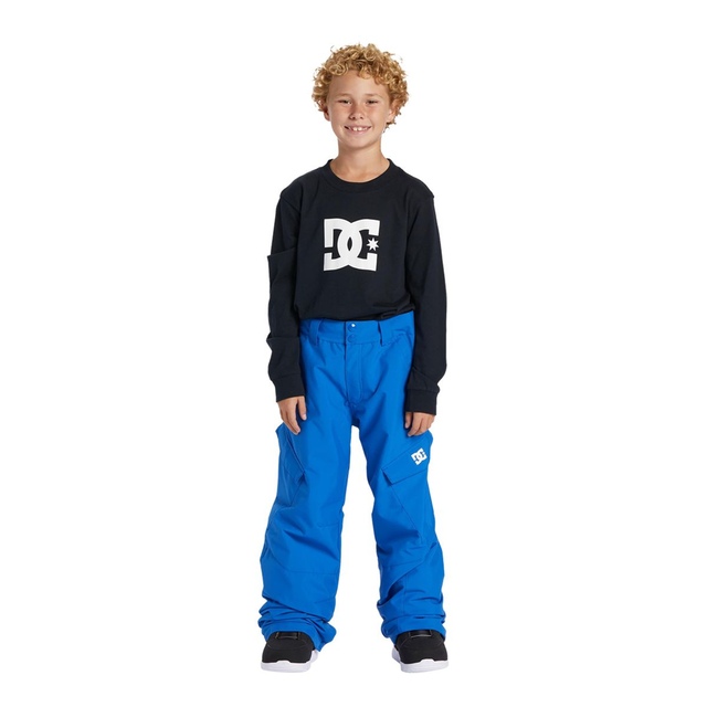 The DC Boys' Insulated Snowboard Pants deliver warmth and eco-conscious performance. Made from 100% recycled polyester, these pants feature WEATHER DEFENSE 10 for reliable waterproofing and breathability. The 40g PROFILL insulation offers warmth, while the adjustable waist and articulated legs provide enhanced mobility.