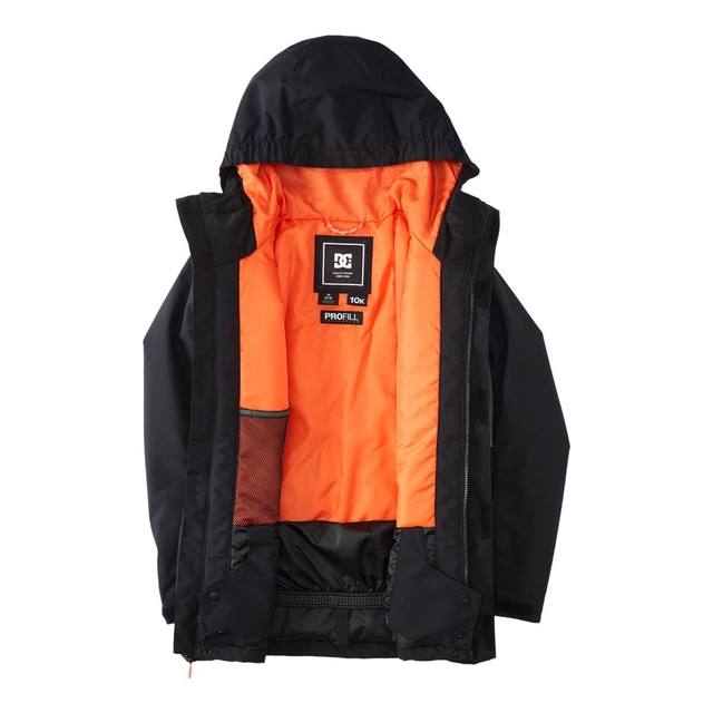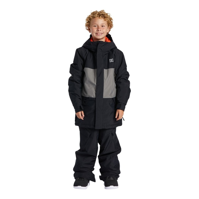 The DC Kids' Defy Insulated Snowboard Jacket showcases bold colour block styling using recycled polyester fabrics and PROFILL insulation. Featuring the Jacket-to-Pant Attachment system, this jacket is designed for young snowboarders, providing warmth and durability in cold mountain conditions.