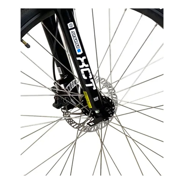 Suntour XCT long travel front suspension with lockout and preload adjustment pairs with soft tail rear suspension providing a smooth ride over any trails