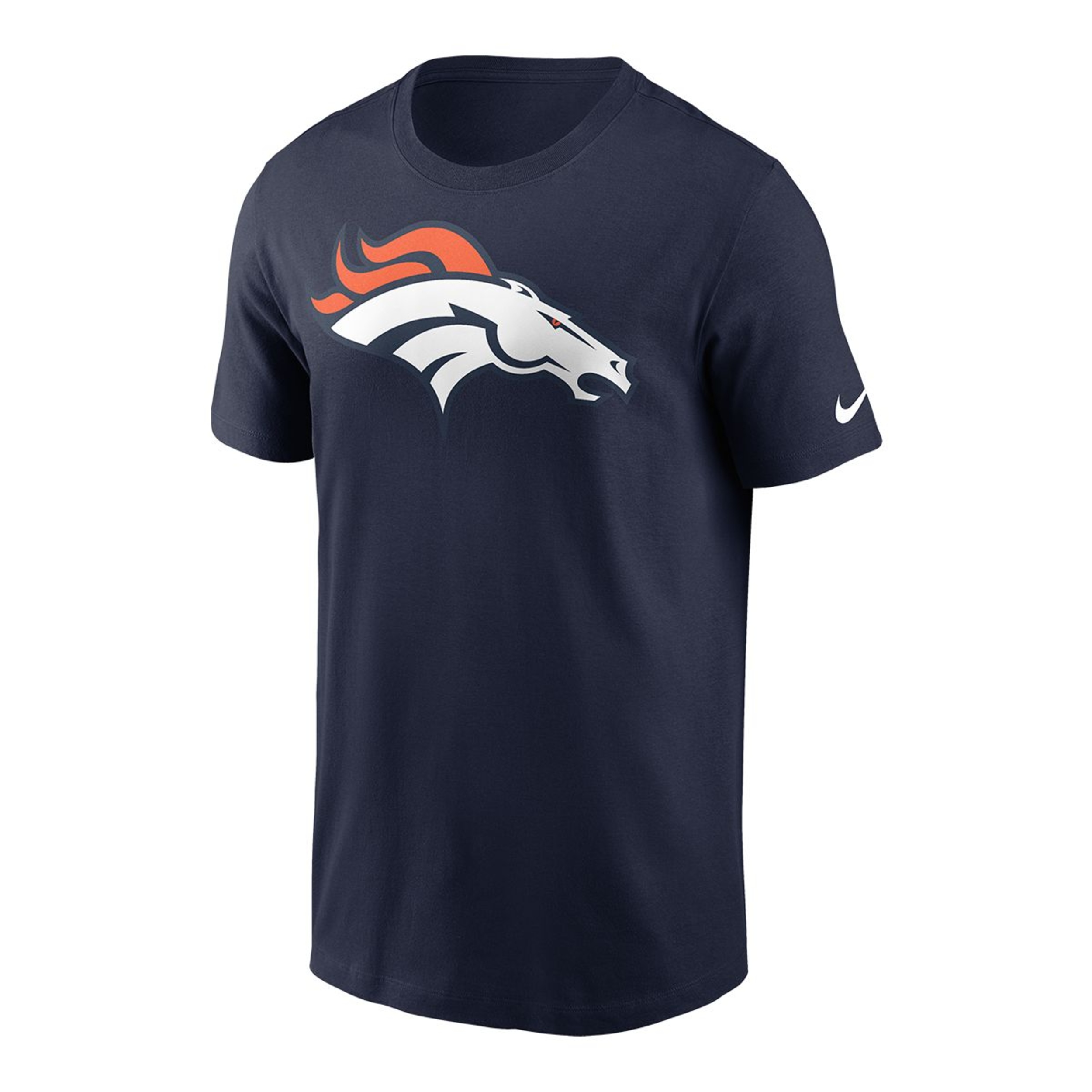 Denver Broncos Nike Logo Essential Cotton tee with short sleeve crew neck and a graphic screen printed on the chest and the Swoosh screened on the left sleeve.