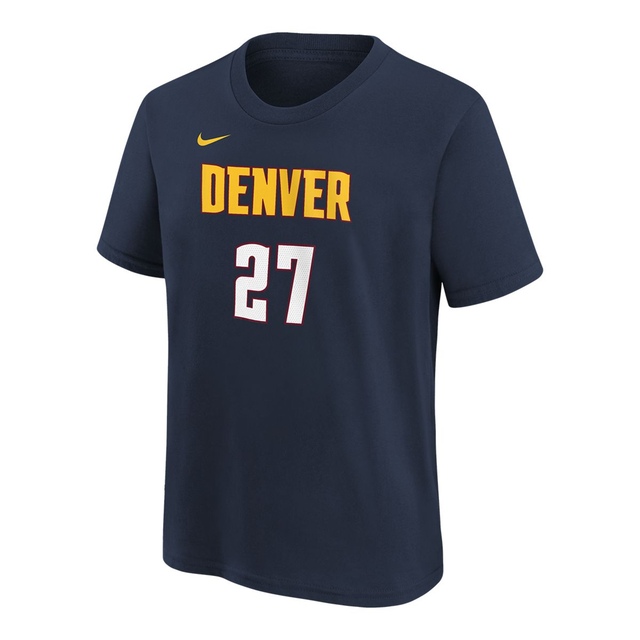 The Denver Nuggets Nike Youth Jamal Murray Icon Player T Shirt is designed for young fans, featuring screen-printed player name and number. Made with a soft cotton body in the team's Icon colour and authentic graphics, this officially licensed tee is perfect for game day.