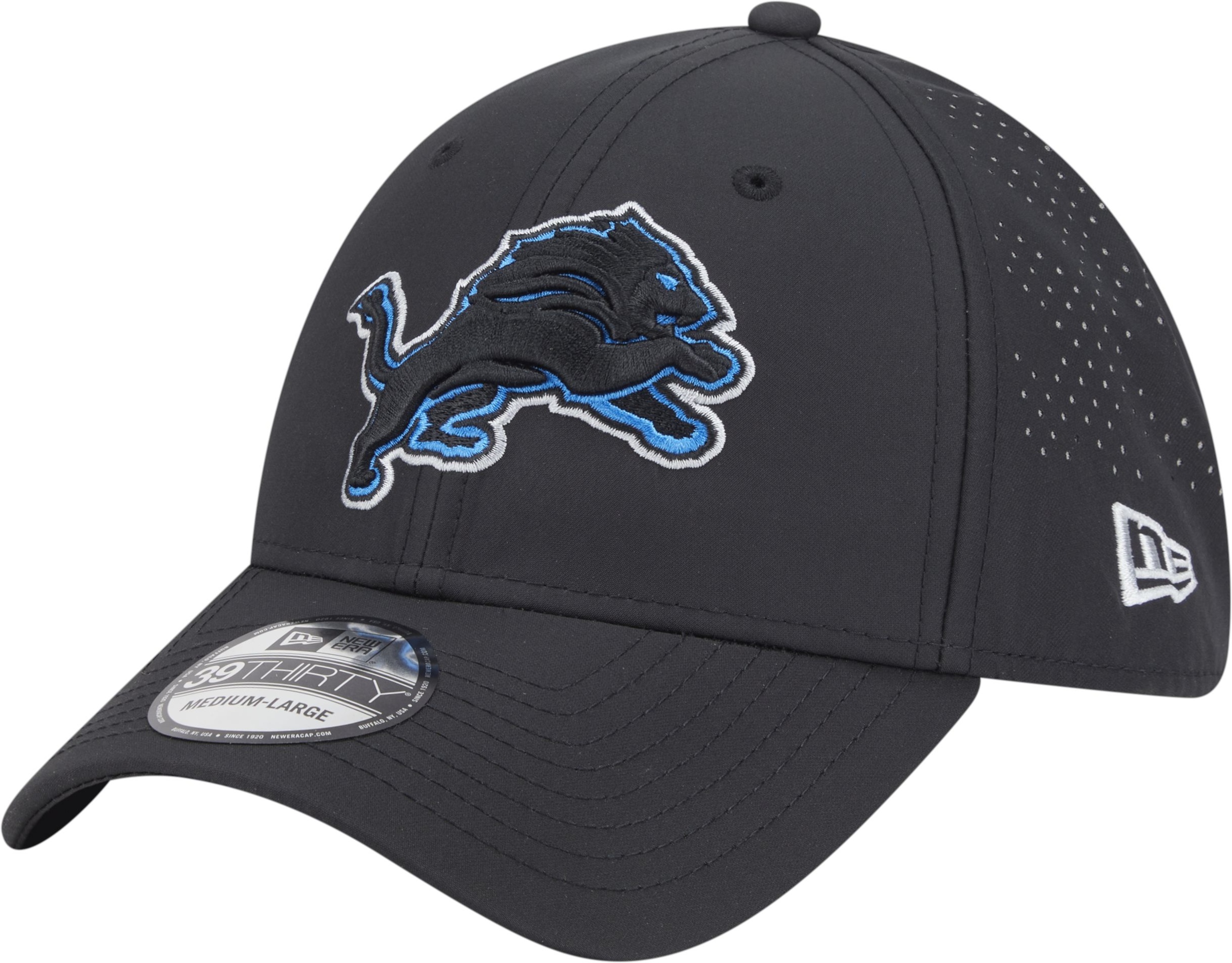 Show your support for the Detroit Lions with the Detroit Lions New Era 39THIRTY Night Cap. This stylish polyester hat features a sleek design with a tonal Lions logo and team colour accents. The perforated panels add a unique touch, while the stretch fit ensures a comfortable wear. The team wordmark is embroidered at the back to showcase team pride.