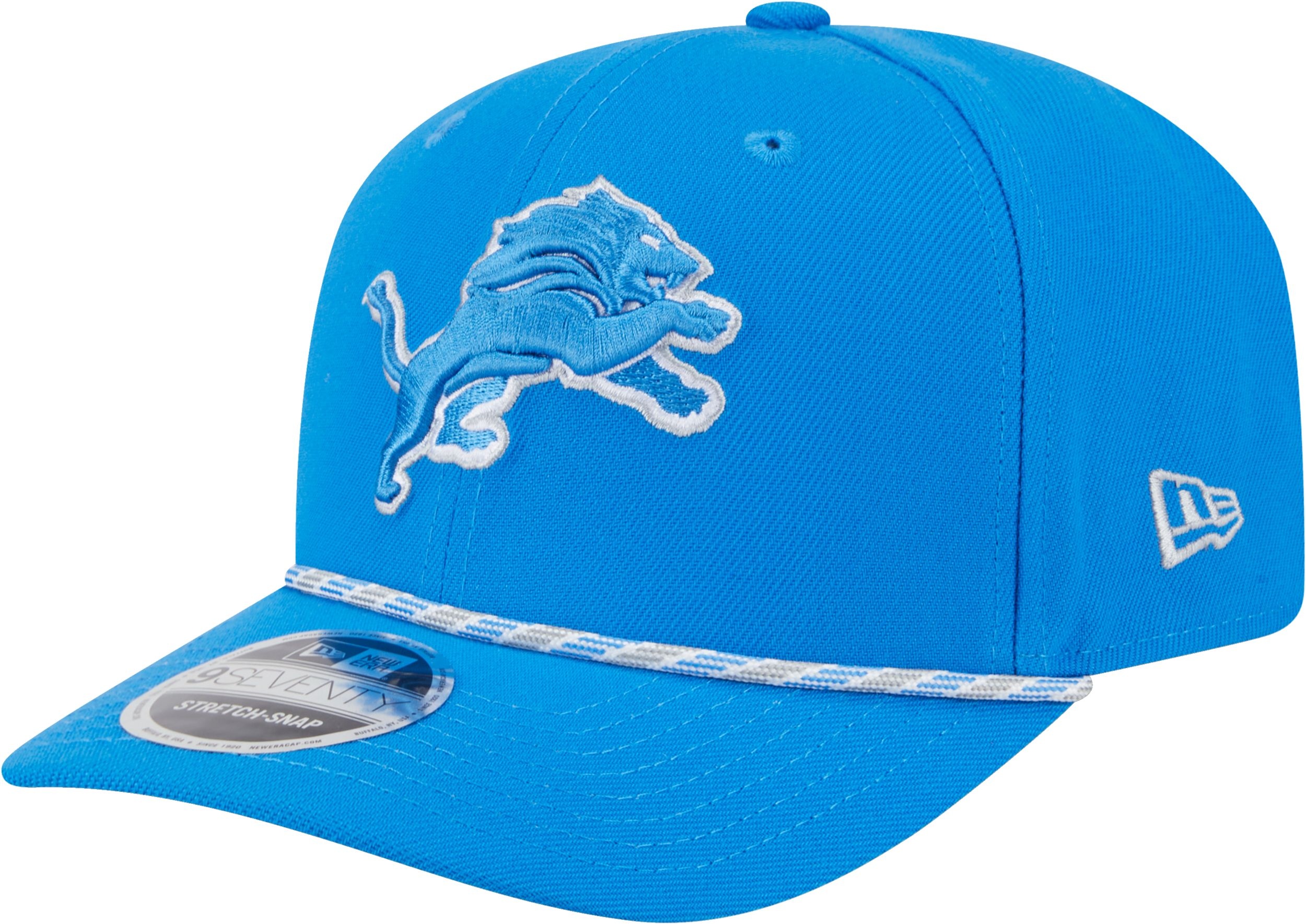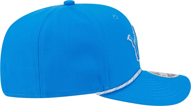 Detroit Lions 9SEVENTY Stretch Snap cap. Full profile crown with pre-curved visor. Team colour blue cap with rope design feature between crown and visor. Team colour plastic snap closure pairs with a stretch headband for the ultimate comfort fit. Lions primary logo is embroidered, raised, on front panels. A very clean, but updated, look for the true fan.