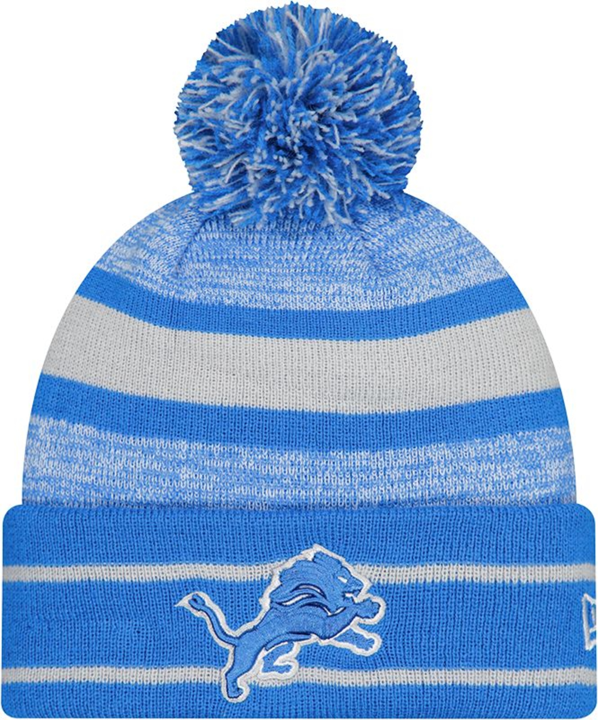 The Detroit Lions New Era Cuffed Pom Knit Hat is a stylish and cozy winter accessory for devoted fans of the Detroit Lions NFL team. This knit hat features a marled team colour crown with a solid team colour cuff, creating a distinctive two-tone look. The multi-coloured team pom on top and striped detailing on the crown add visual flair. Completing the design is the embroidered Detroit Lions primary logo prominently displayed on the front cuff to showcase team pride.