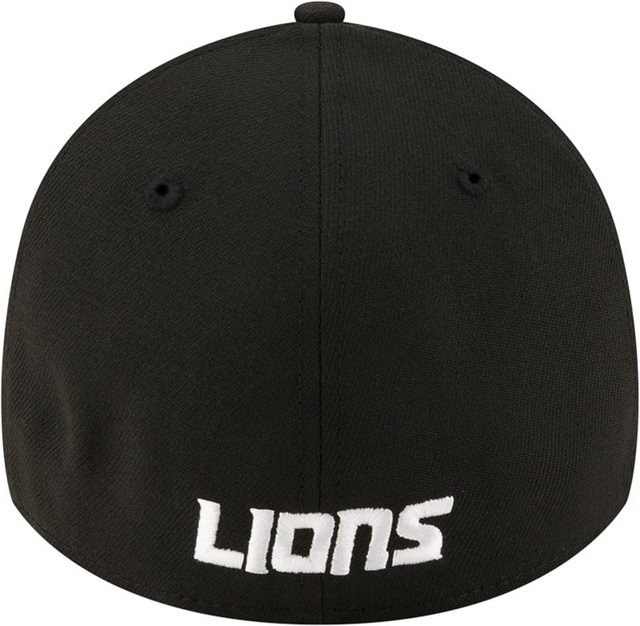 Detroit Lions New Era Team Classic 39THIRTY Cap is a stretch fit cap for comfort. This mid profile cap with pre-curved visor and sized stretch headband ensures a perfect fit. All black cap with team colour Lions primary logo embroidered on the front. Complete with Lions wordmark embroidered at the back.