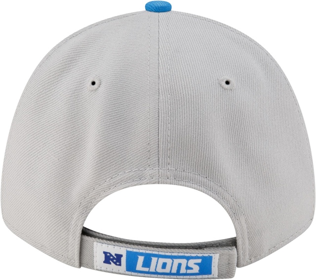 Detroit Lions New Era The League 9FORTY Cap is a structured cap for a fitted look. This is a mid profile cap with pre-curved visor and adjustable velcro closure. Team colour Lions primary logo embroidered on the front. Complete with woven tab with Lions wordmark on fabric strap closure at the back.