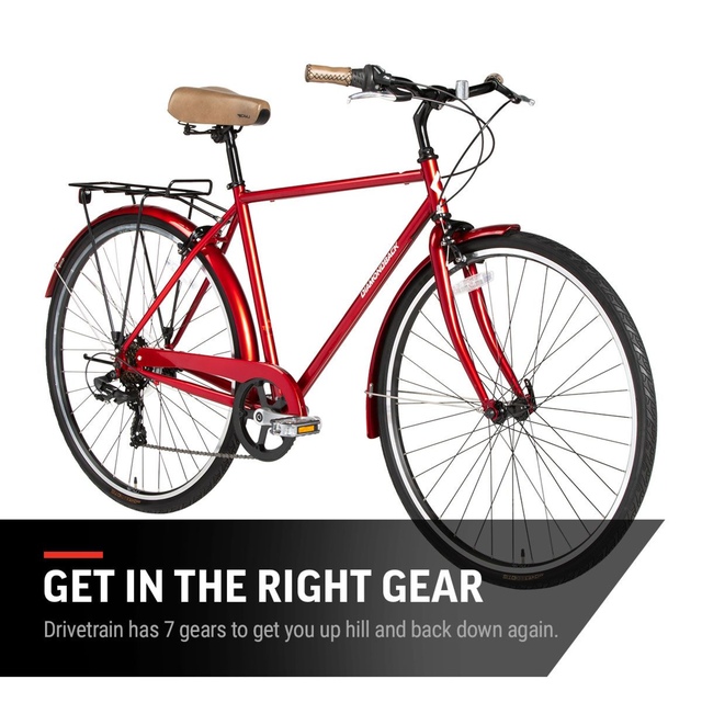 The Diamondback Beltline offers a classic look with modern features. While the vintage-style seat and fenders give the bike a retro look, they also offer comfort and protection from road spray getting on your clothes. The rear rack offers you some storage space for your work bag or perhaps a shopping bag. The Shimano Tourney drivetrain offers 7 gears to choose from so you can make it up (and down) that big hill on your weekly route. Whether you are on the way to work or cruising the local pathways on the weekend, the Diamondback Beltline will have you doing it in style.