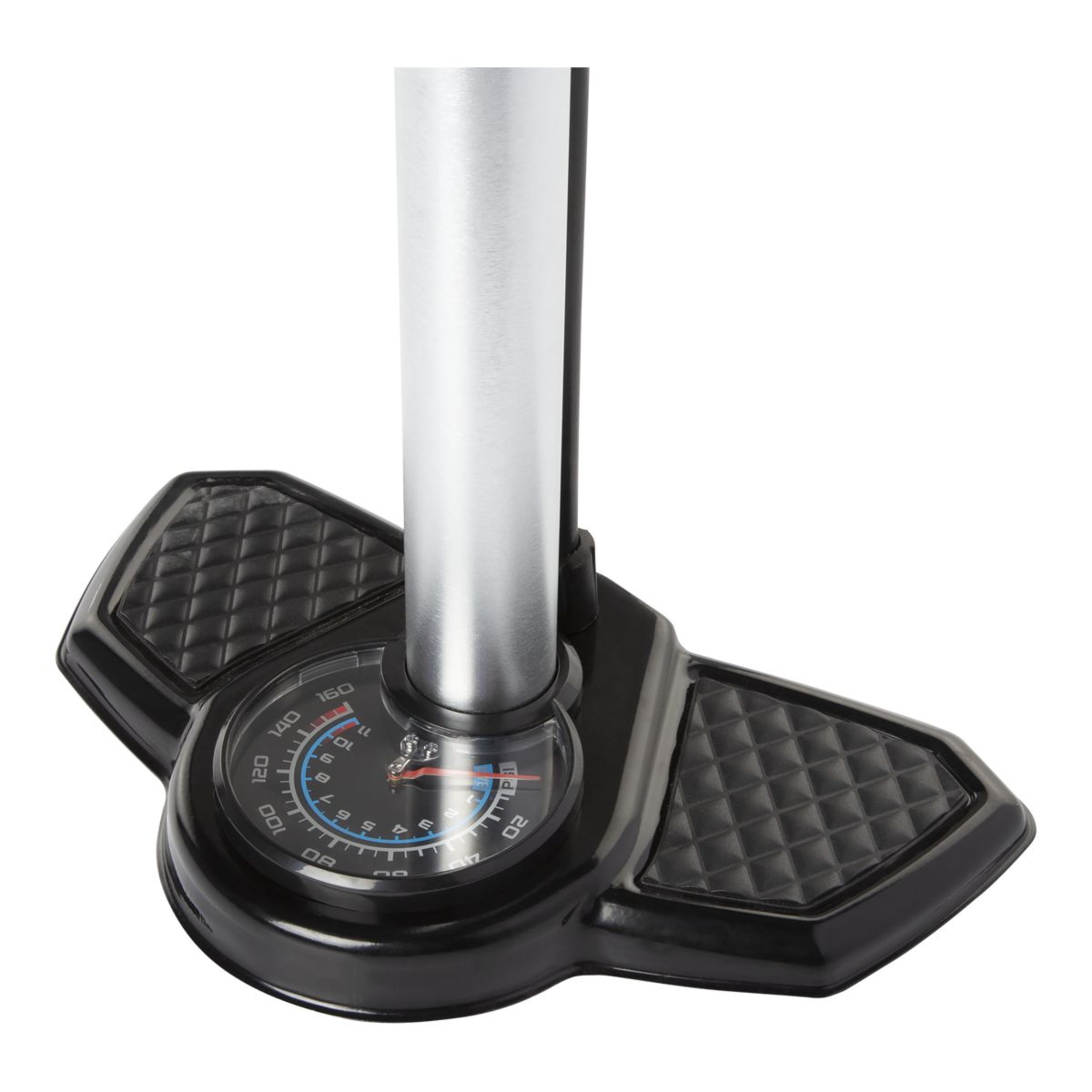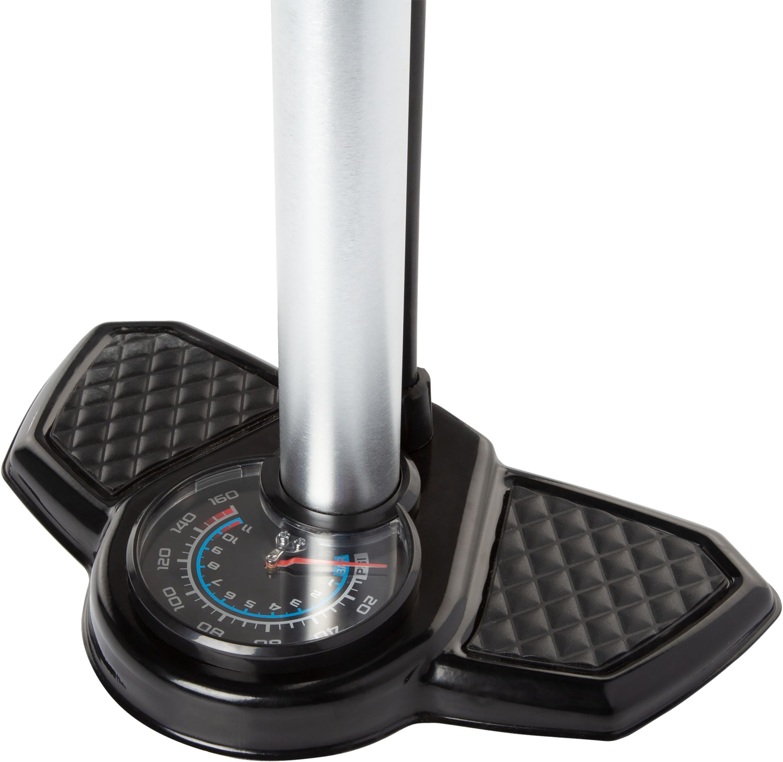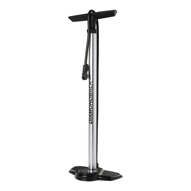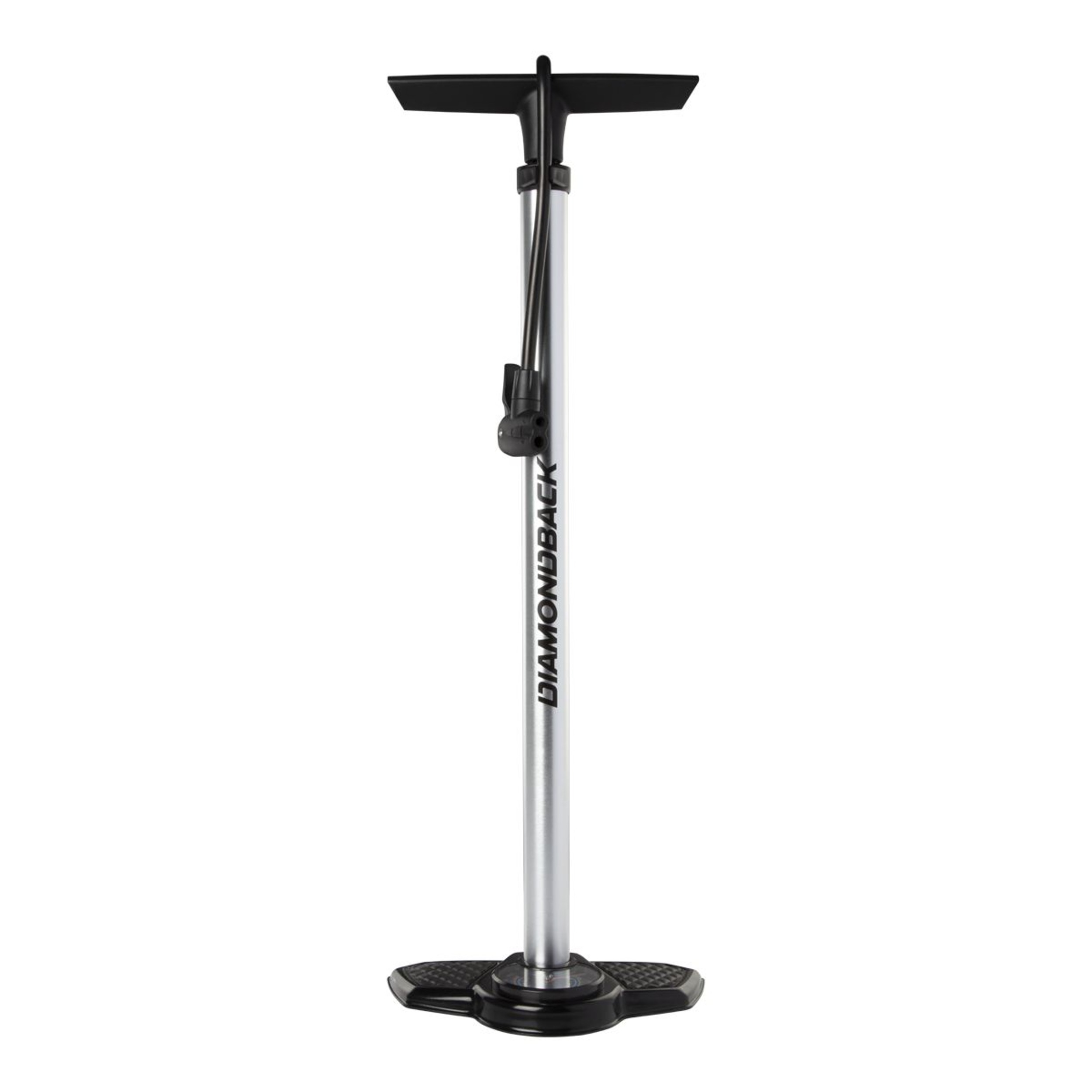 The Diamondback Bike Floor Pump delivers reliable tire inflation for your cycling adventures. Featuring dual-head valve compatibility, it seamlessly fits both Presta and Schrader valves. The top-mounted analog pressure gauge, equipped with a pressure bleeder button, ensures precise PSI control. Constructed with an alloy barrel and co-moulded steel and plastic foot base, this pump offers exceptional durability. Its low-profile gauge design allows for convenient storage, making it an essential accessory for every cyclist.